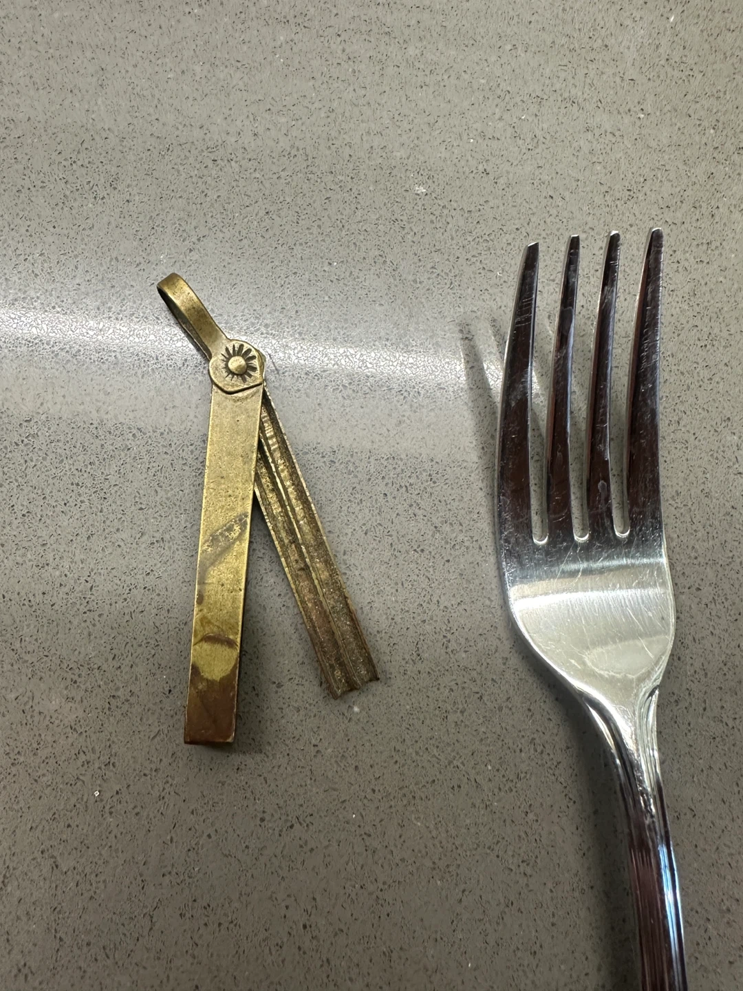 A beautiful and very interesting hand made solid brass Match striker for a pocket watch chain. Circa 1930’s. Center element swings out. Brass can be polished to a bright gold sheen if desired, but the aged patina is very nice. New leather strap is included for wear as a necklace.
