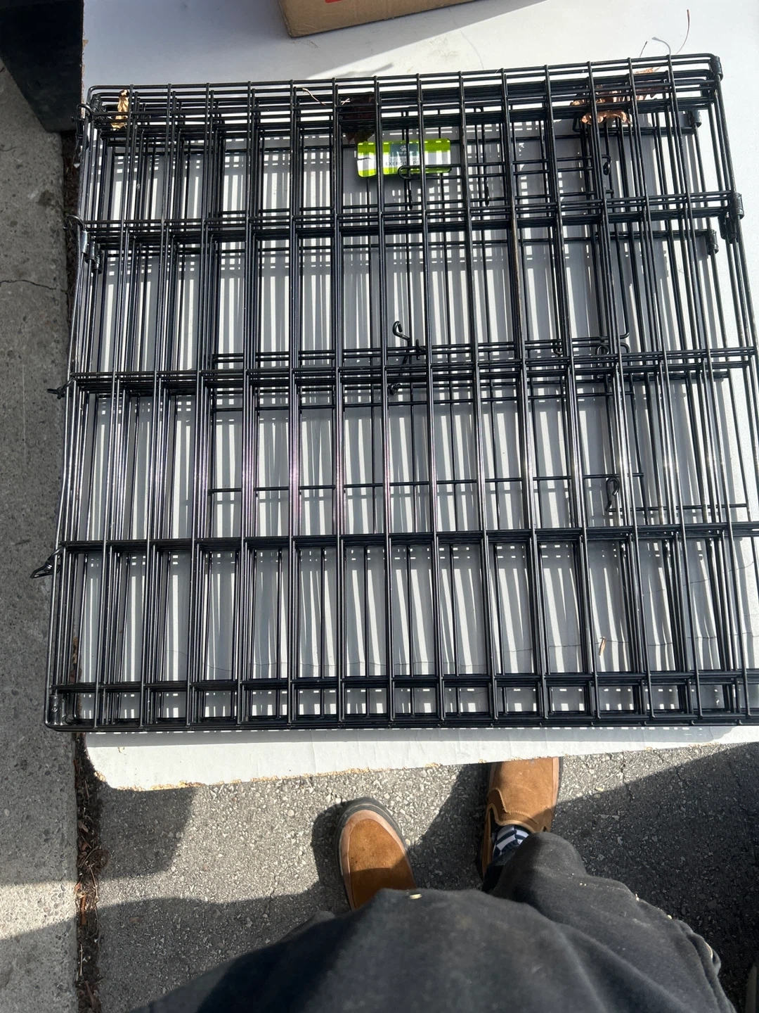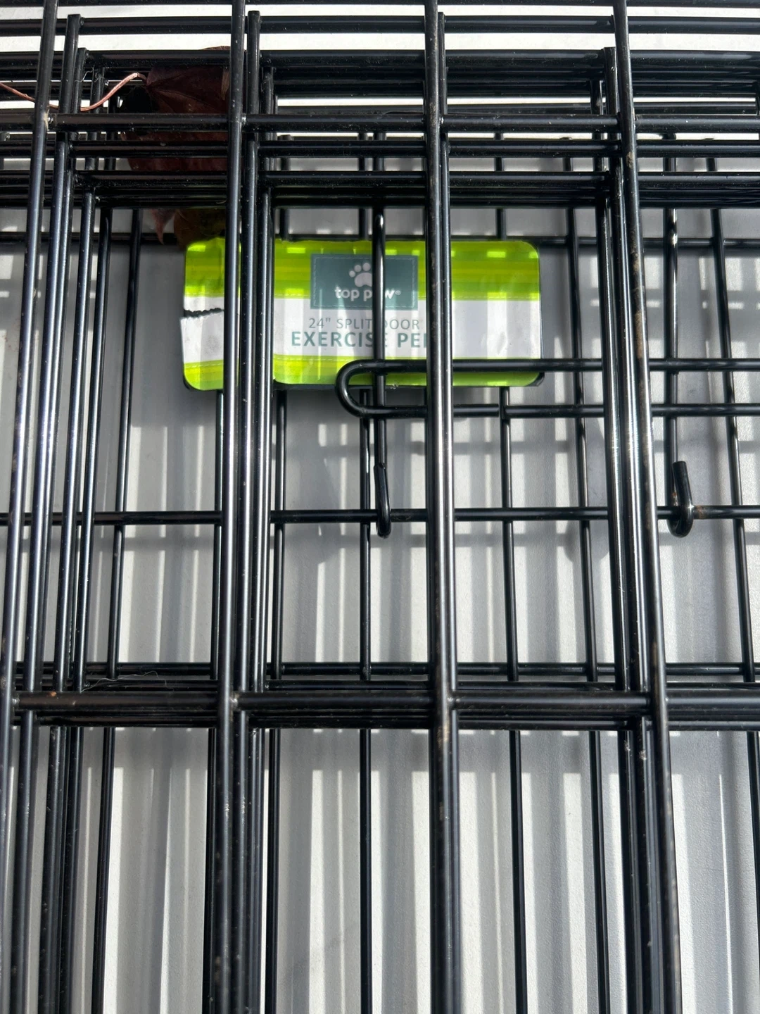 This is a Top Paw 24" split door exercise pen. It's made of durable black wire. Perfect for keeping your pet contained safely!