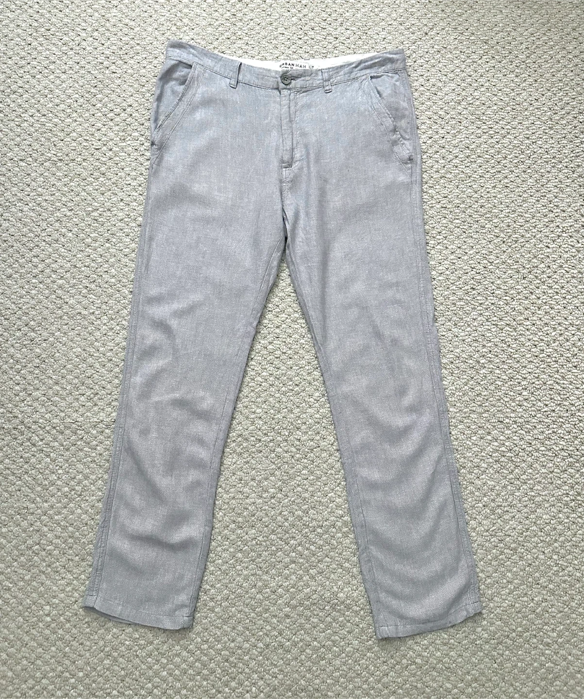 Men’s grey rayon/linen blend pants, size 34 waist, 32 length, regular cut (not fitted), clean, no damage