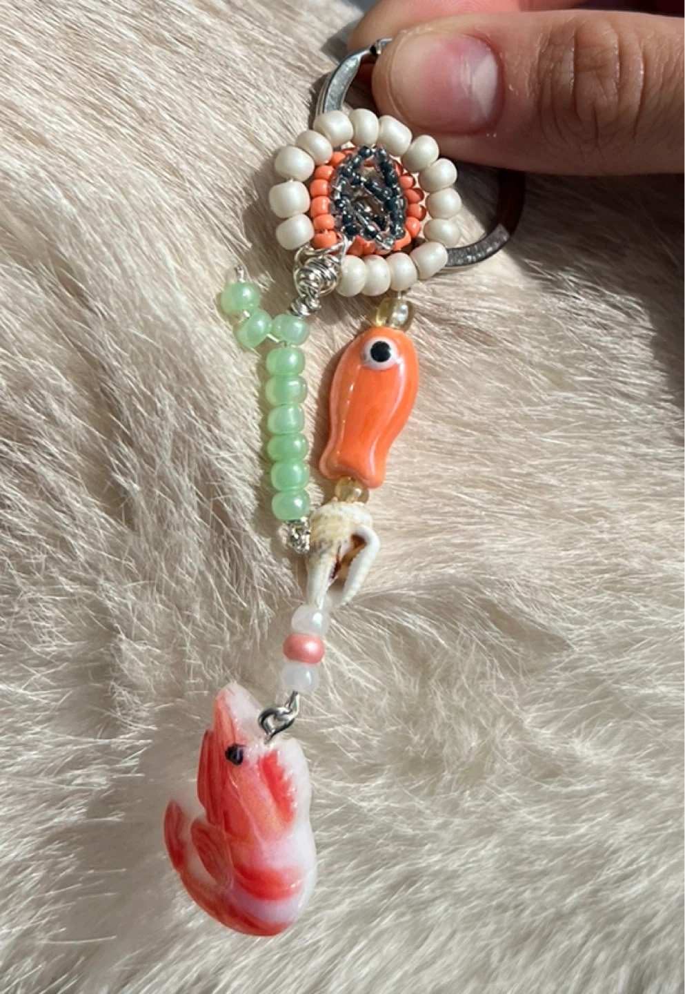 Handmade Beaded Keychain with Shrimp Charm
