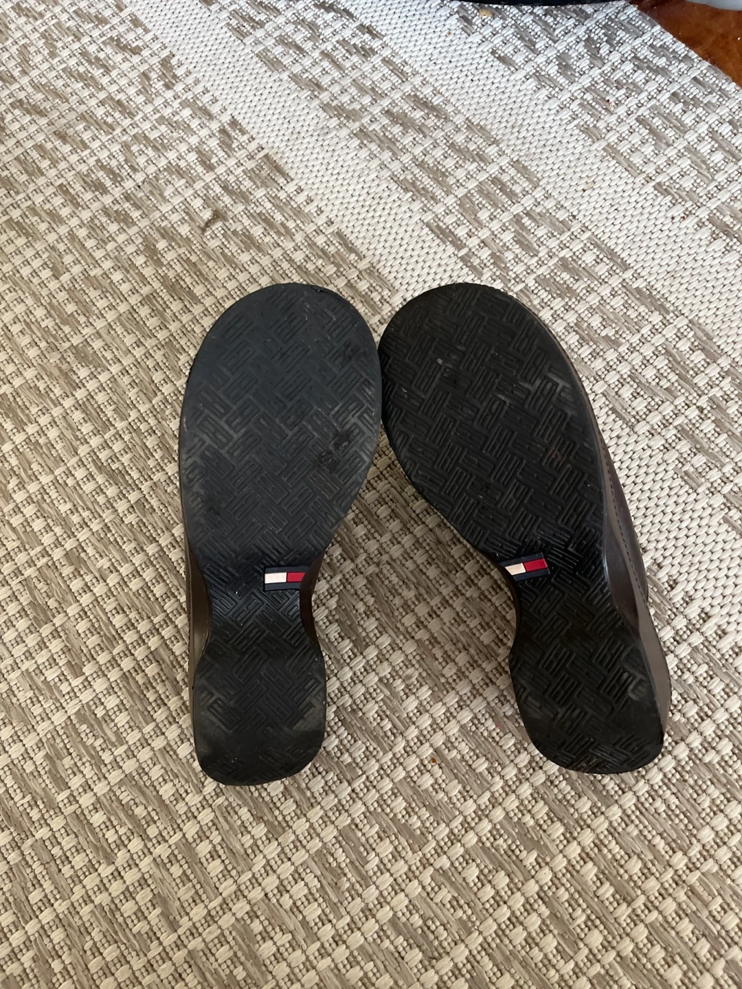 Comfortable Tommy Hilfiger wedge clogs in a rich brown colour. These shoes have a classic slip-on design with a sturdy wedge heel. Perfect for adding a bit of height to your everyday outfits! Worn Once! Priced to Sell $15 First Come PU Bolton