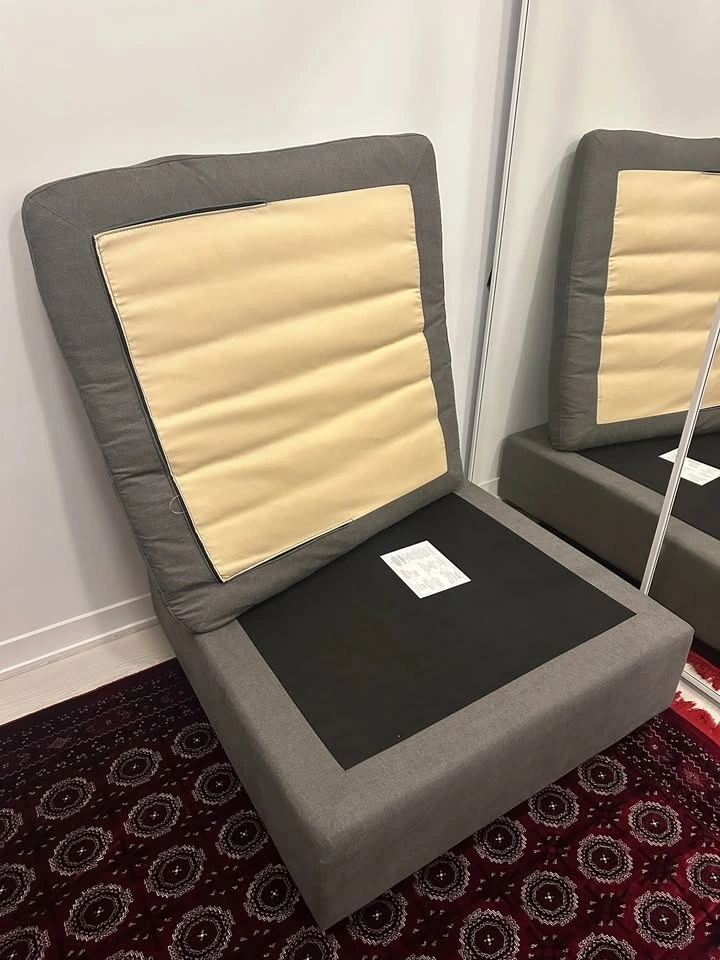 Brand new, used only a handful of times. Selling because it doesn't quite fit our space. This ottoman is from a smoke-free & pet-free home. It's designed to complement the Structube Soft Contemporary sofa collection, either as an L-shape addition to the 3-seater or as part of the modular sectional.