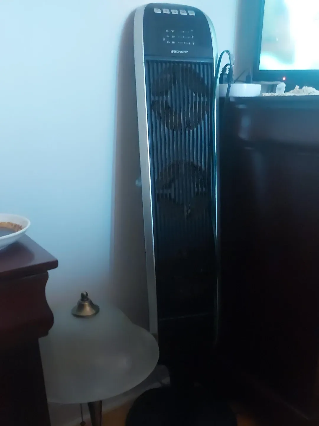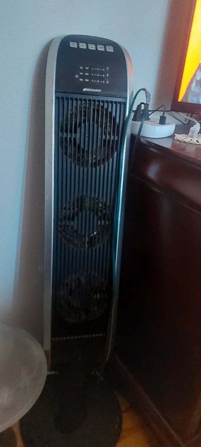 This is a Bionaire tower fan with multiple speed settings. It's a great way to keep your space cool and comfortable during warmer weather. Perfect for bedrooms or living areas.
