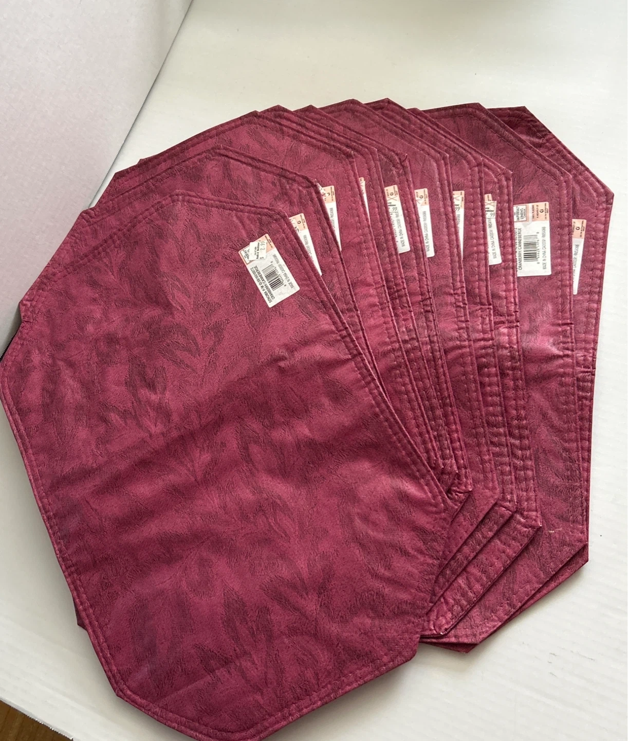 πŸ† Set of 10 pieces - Sonoma placemats in a cranberry colour. Vinyl material, made in China. Made of good quality vinyl. These placemats are a handy size for everyday dining. Price tags still attached. Check out photos provided please. Smoke/Pet free home. Cash & Pick Up only.