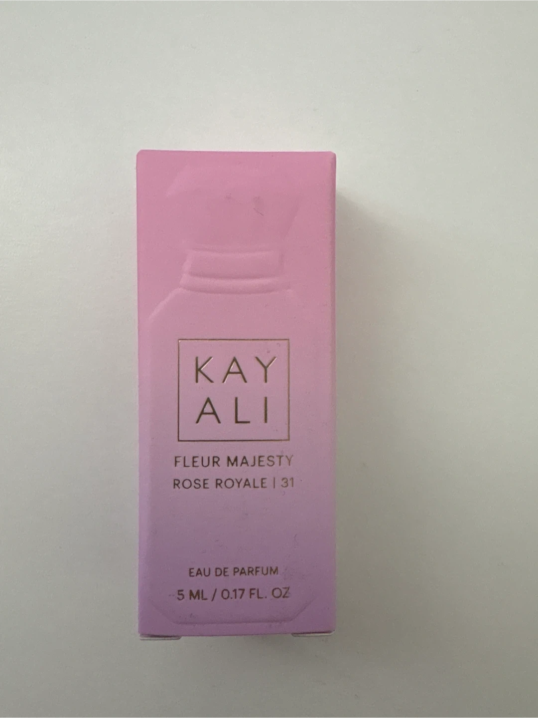 This is a travel-sized 5ml bottle of Kayali Fleur Majesty Rose Royale Eau de Parfum. It's a miniature version of the full fragrance.