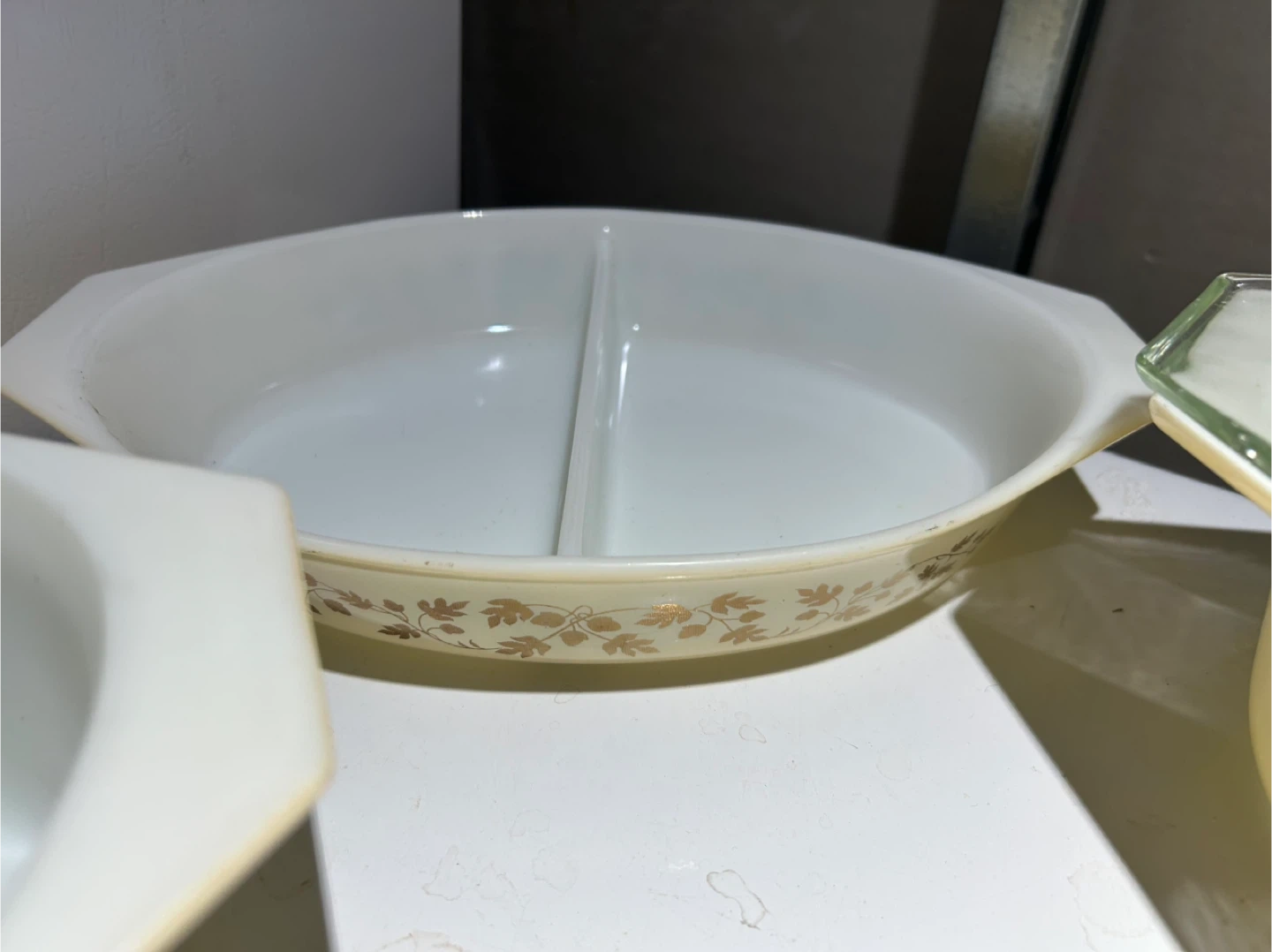Pyrex Casserole Dishes with Gold Leaf Pattern - Set of 3
