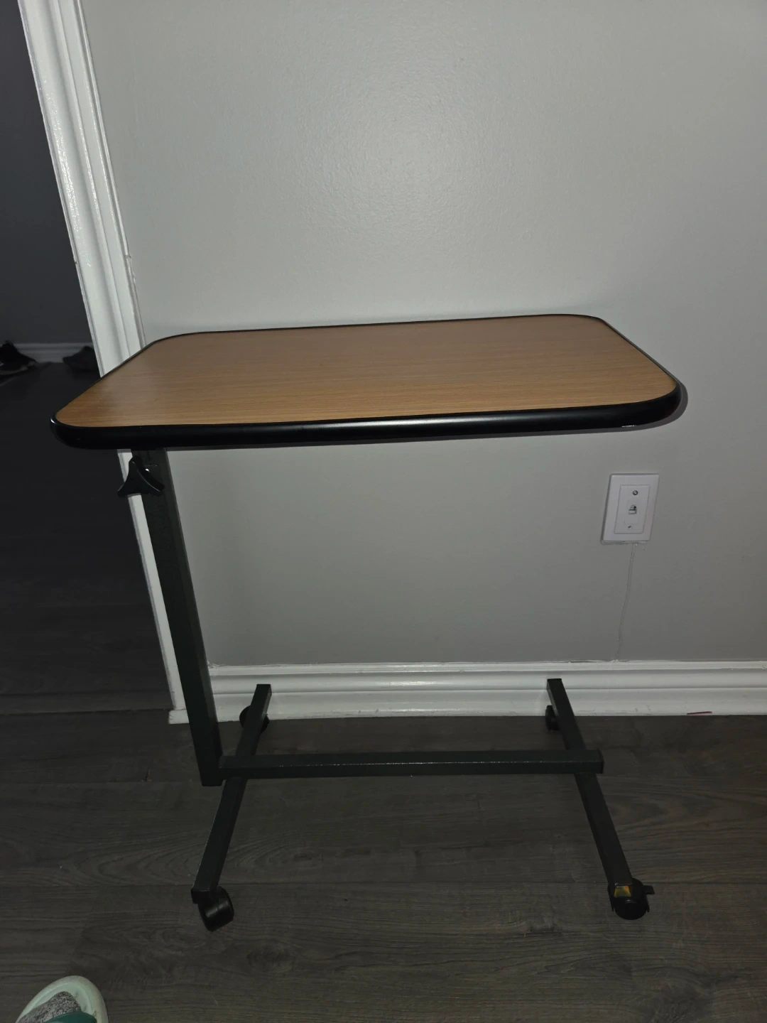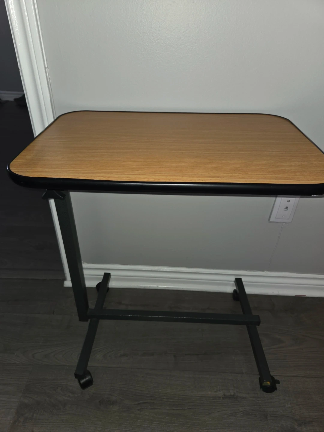 Selling an adjustable rolling overbed table! It is in great condition and ready to use. Perfect for working from home, or just relaxing in bed