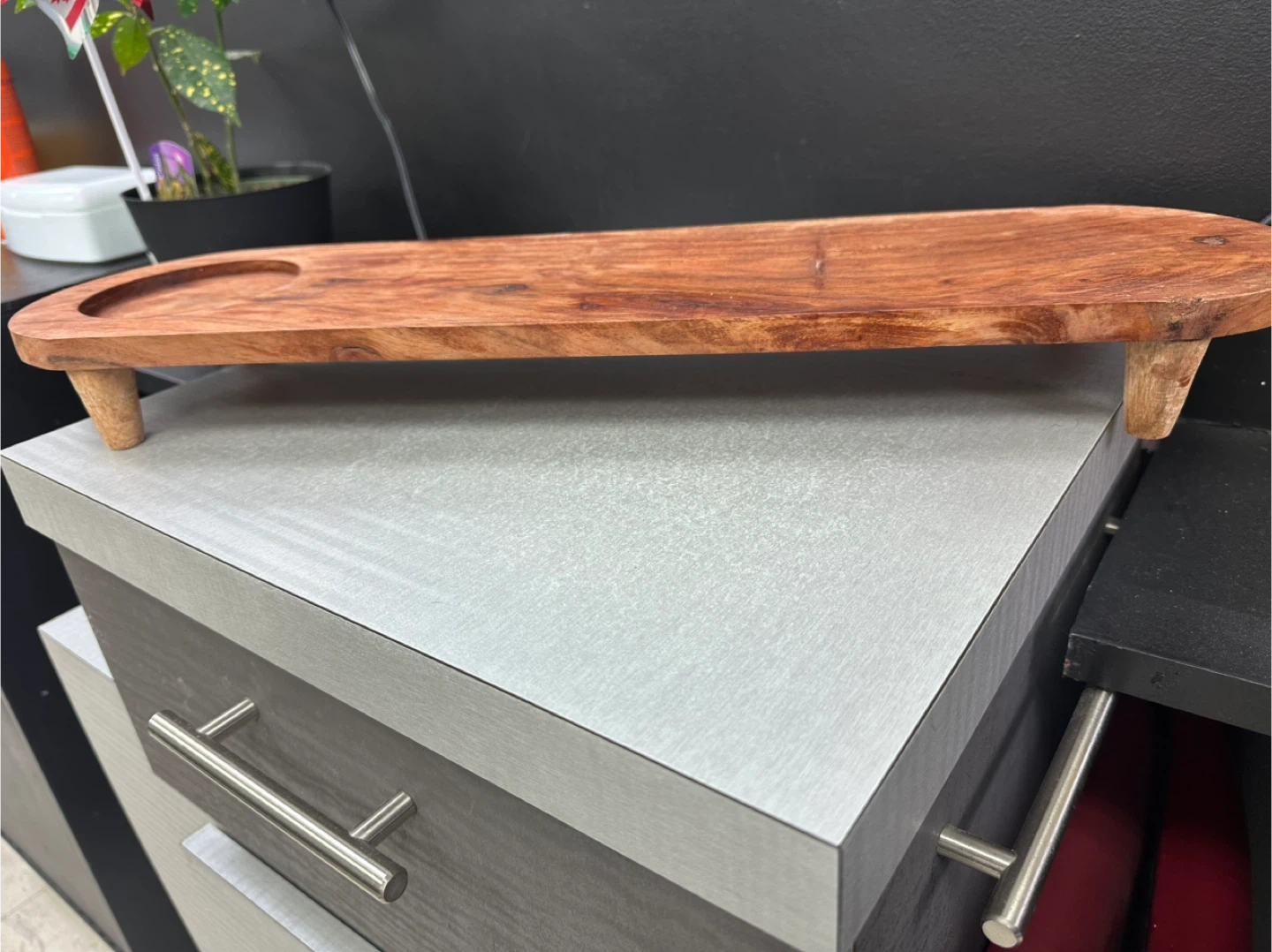 Wooden Serving Tray with Circular Indentation