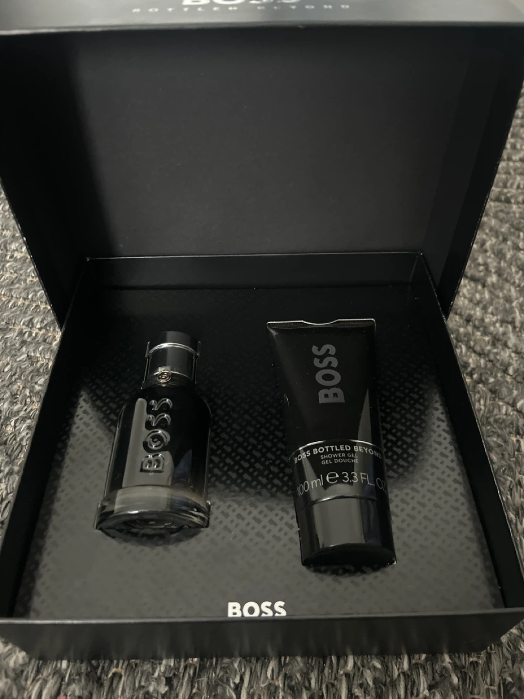 This gift set includes BOSS Bottled Beyond Eau de Parfum and a 100ml shower gel. It's a great set for anyone who loves this scent. The packaging is sleek and sophisticated.