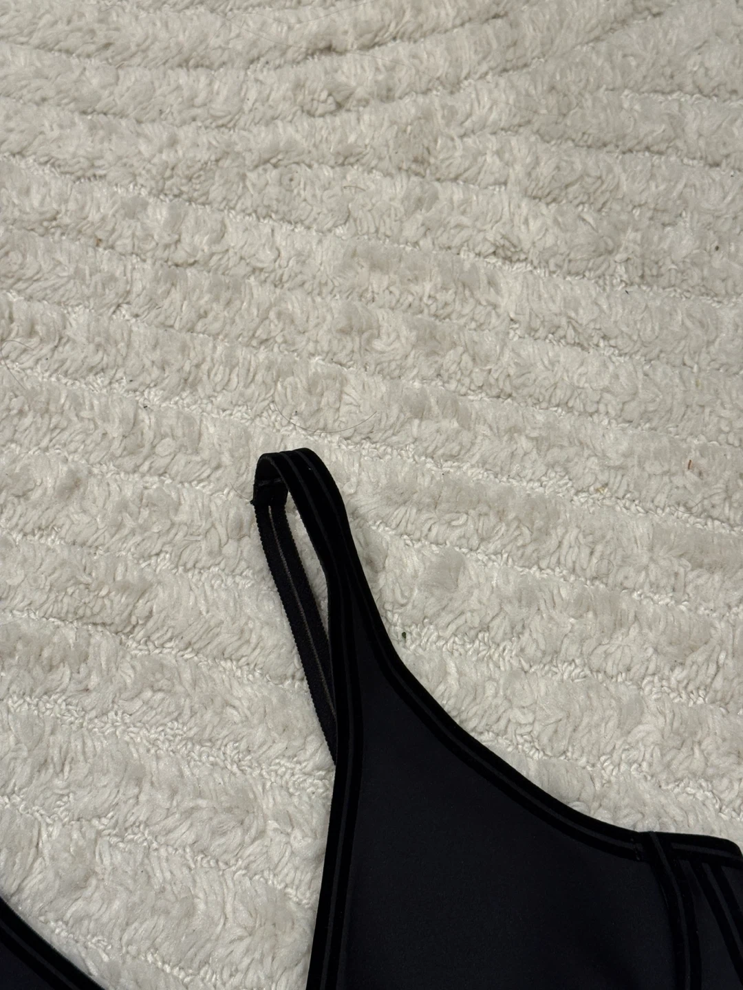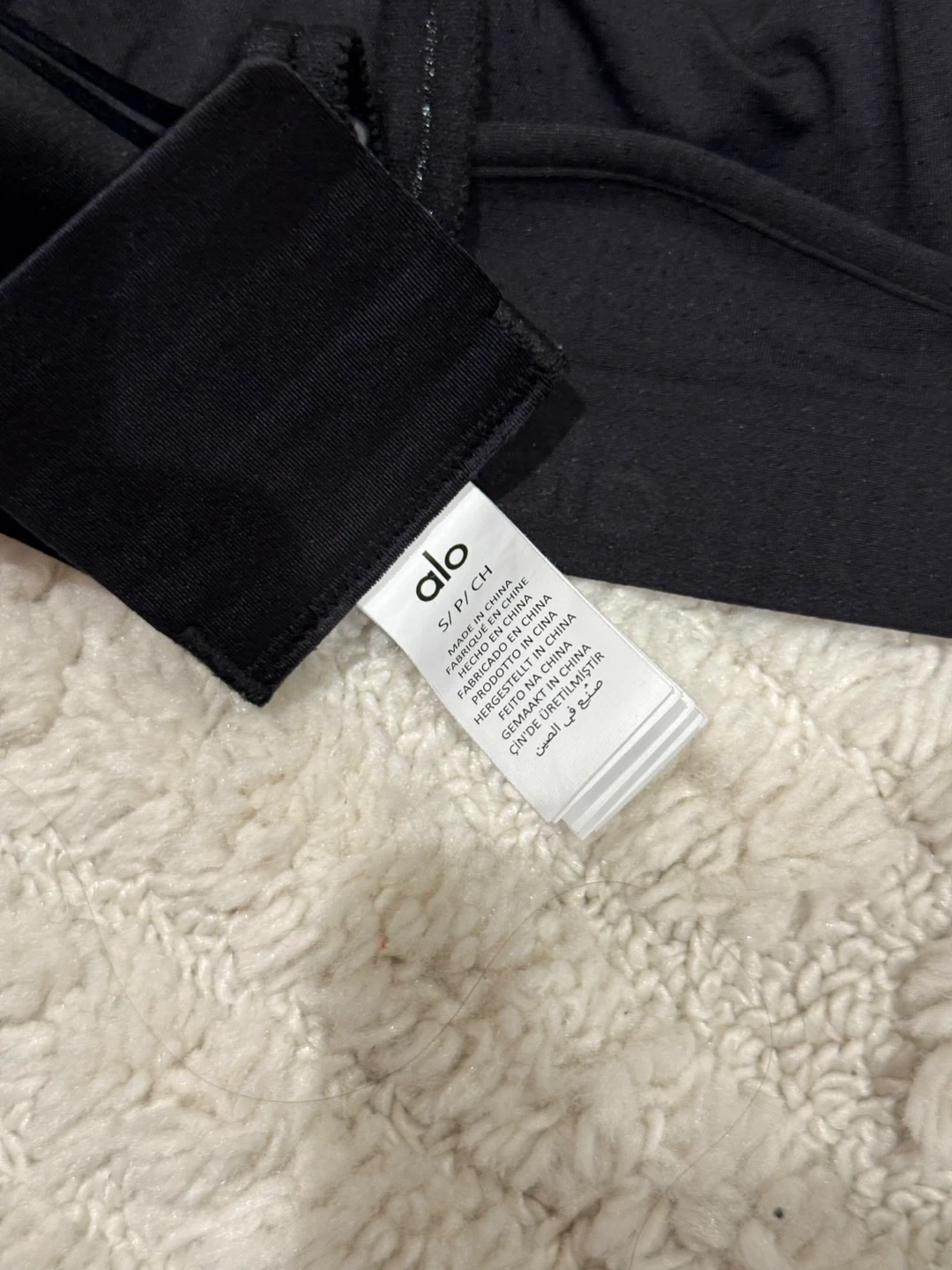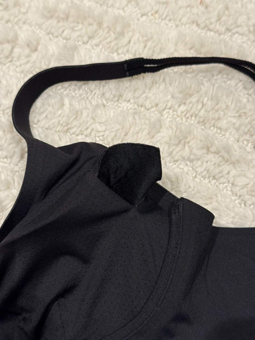 This Alo black sports bra is made for comfort and support. It features adjustable straps and a banded hem. Great for workouts or everyday wear!