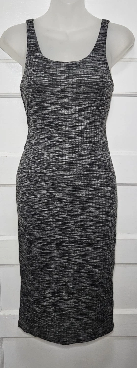 đź’™Look chic and stylish in this pre-owned Express sleeveless midi bodycon dress. The heather grey pattern and crew neckline give it a classic and versatile look suitable for various occasions such as workwear, parties, weddings, and casual outings. The cutout accents on the back add a trendy touch to the dress, which perfectly complements its stretchy knit fabric made of polyester and rayon.