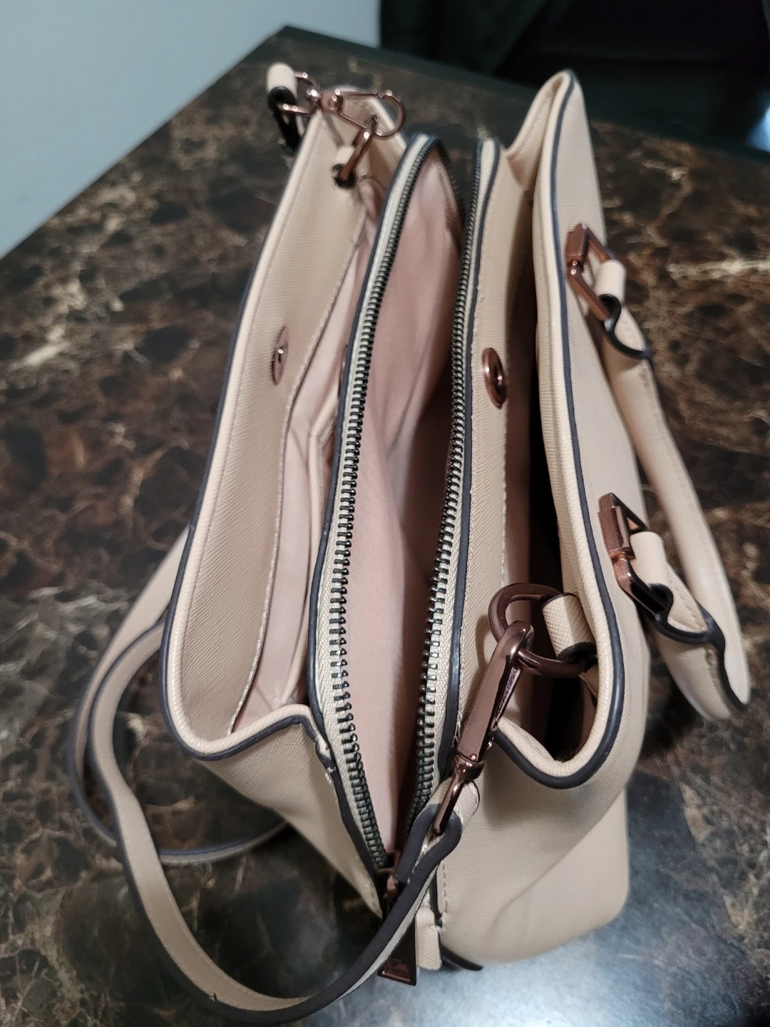Selling an ALDO satchel handbag in a lovely beige colour. It has a structured design and is perfect for everyday use. It is gently used but well-maintained maintained. It is in great condition! I'm selling it because I don't need it. Selling it for $40 but I'm open to best offers.
