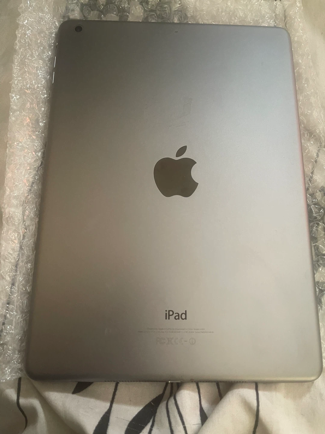 This is an Apple iPad tablet. It has a silver aluminium body. It's ready for a new user!
