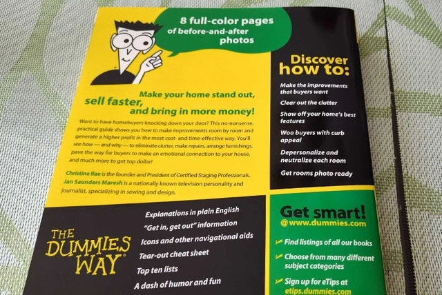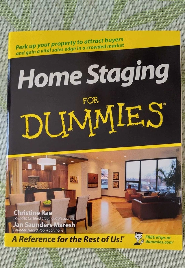 Spruce up your property and attract buyers with this 'Home Staging for Dummies' paperback book, offering vital sales edge insights. This reference book is in good used condition. Full-colour pages with before-and-after photos, easy to understand explanations, icons, cheat sheets, and top ten lists. Priced at $15. Let me know if you're interested!