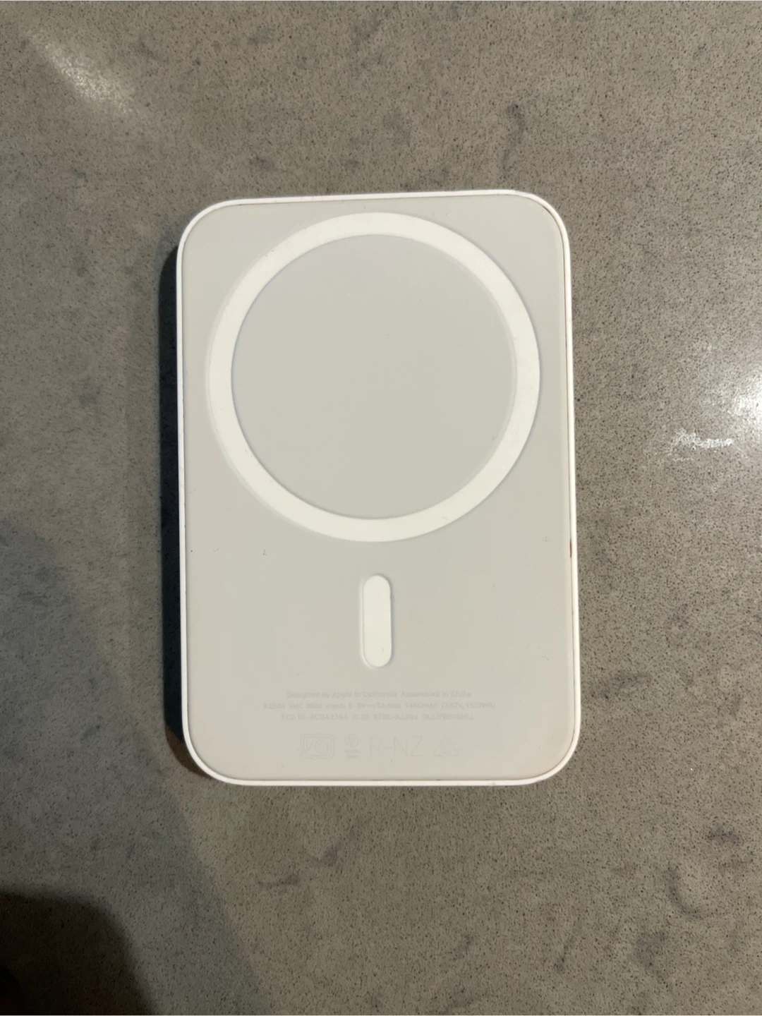 This is an Apple MagSafe Battery Pack. It's white and has a capacity of 1460mAh. Convenient for charging on the go!