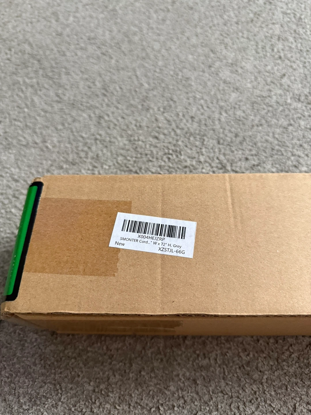 Description: New in box, Model SMONTER Zebra Blinds Blackout in Grey comes 1 pieces for size 66" W X 72" H.