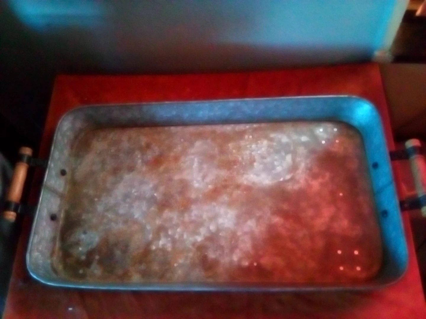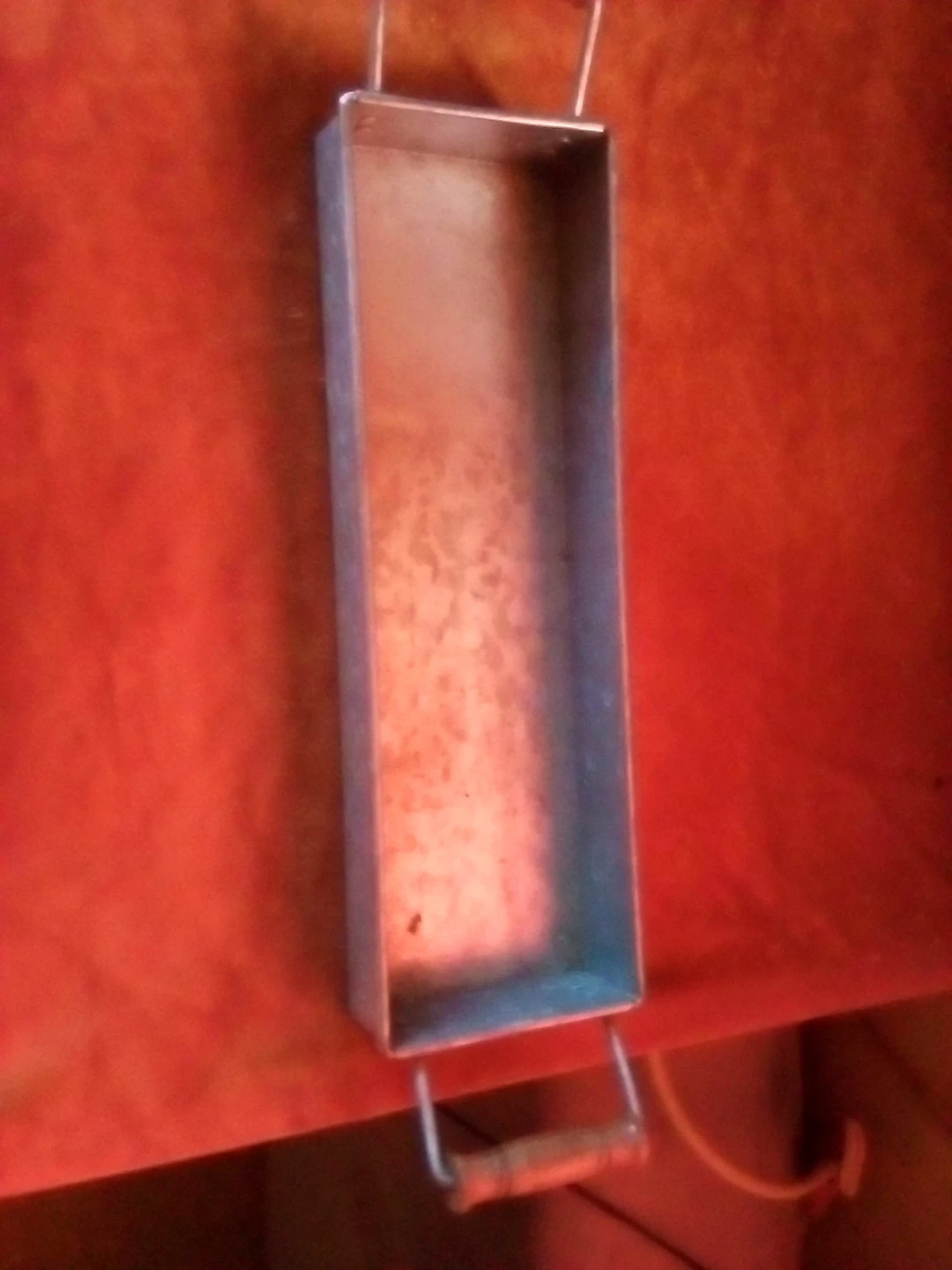 Selling a set of three galvanized metal serving trays. They have a rustic look and could be used for serving or decor. There is a large tray, a square tray, and a long rectangular tray.