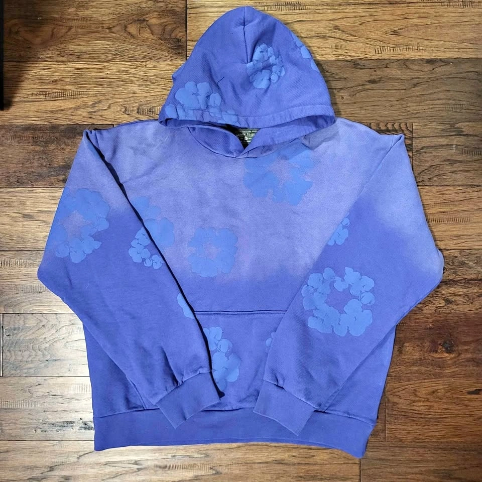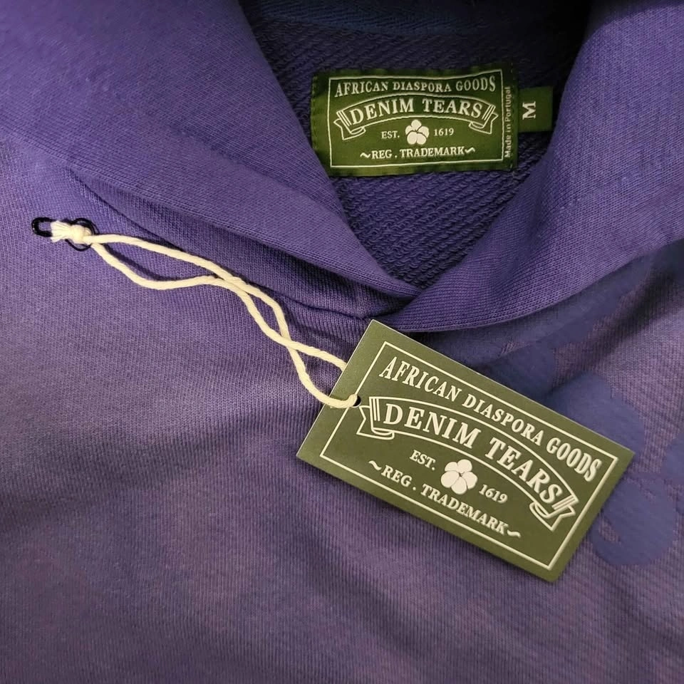 Brand New Denim Tears Mono Cotton Wreath Hoodie in washed blue. Size M, fits oversized like an L. Comes with tags. Cash only. Meetup at Planet Fitness Plaza in Pickering (2460 Brock Rd, Pickering, ON L1X 2R2). No delivery unless paying an E-transfer deposit before-hand