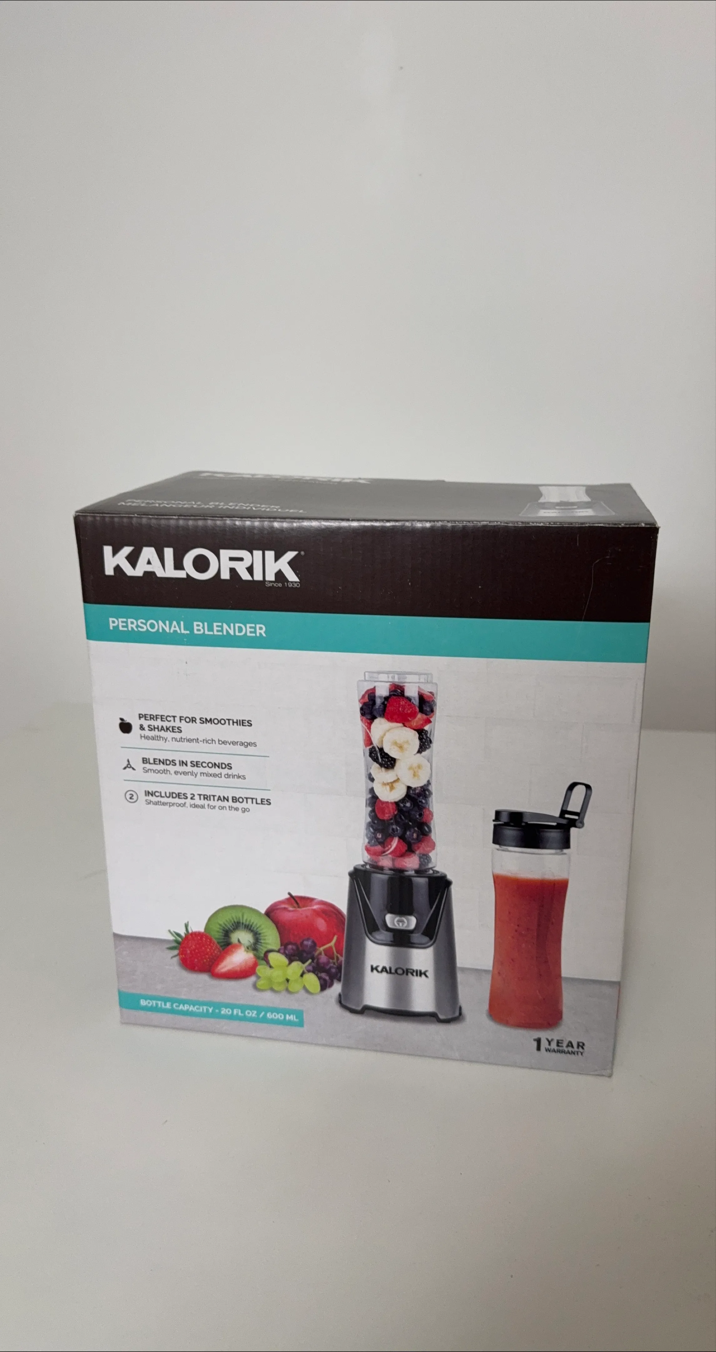 Selling a new Kalorik Personal Blender! It's perfect for making smoothies and shakes in seconds. The blender comes with 2 Tritan bottles that are shatterproof and ideal for on the go. The bottle capacity is 20 fl oz / 600 mL. Get healthy, nutrient-rich beverages with ease!