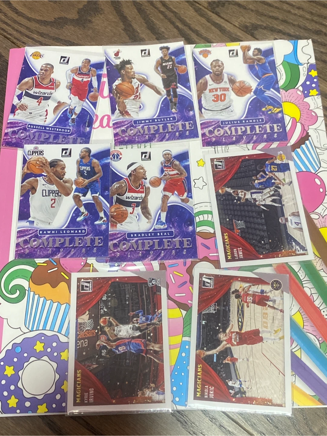 Collection of Donruss basketball trading cards featuring various players. Includes 'Great X-Pectations' and 'Complete Players' inserts. Cards are in protective sleeves.