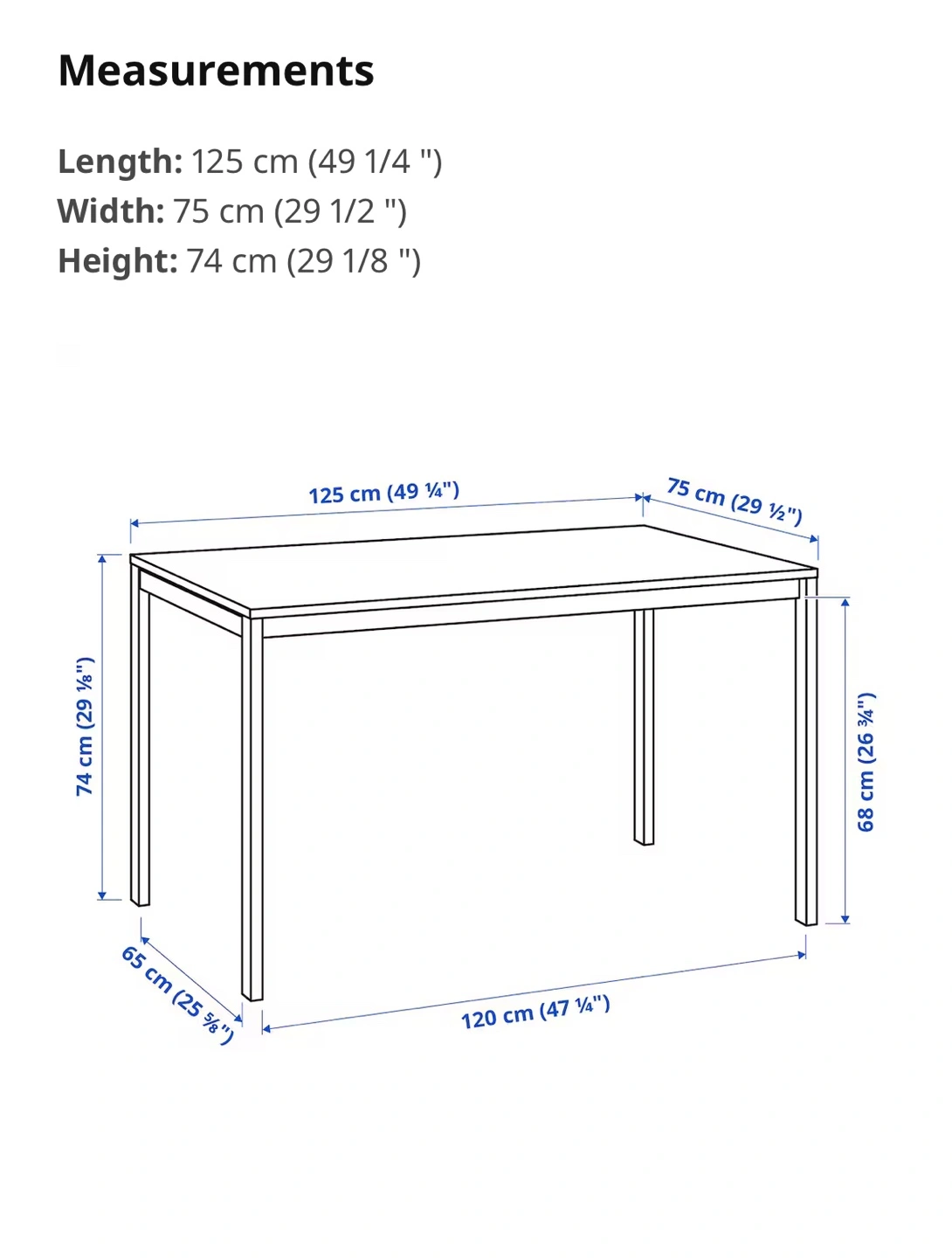 - DimensionsW - 75cm , L - 125cm , H - 74cm