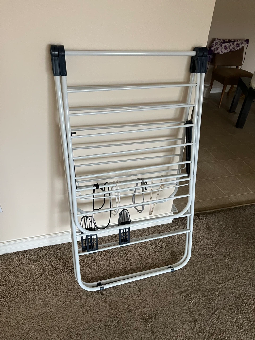 Selling a handy folding clothes drying rack! It's in great shape and perfect for saving space when not in use. Great for apartments or anyone who wants to air dry their clothes