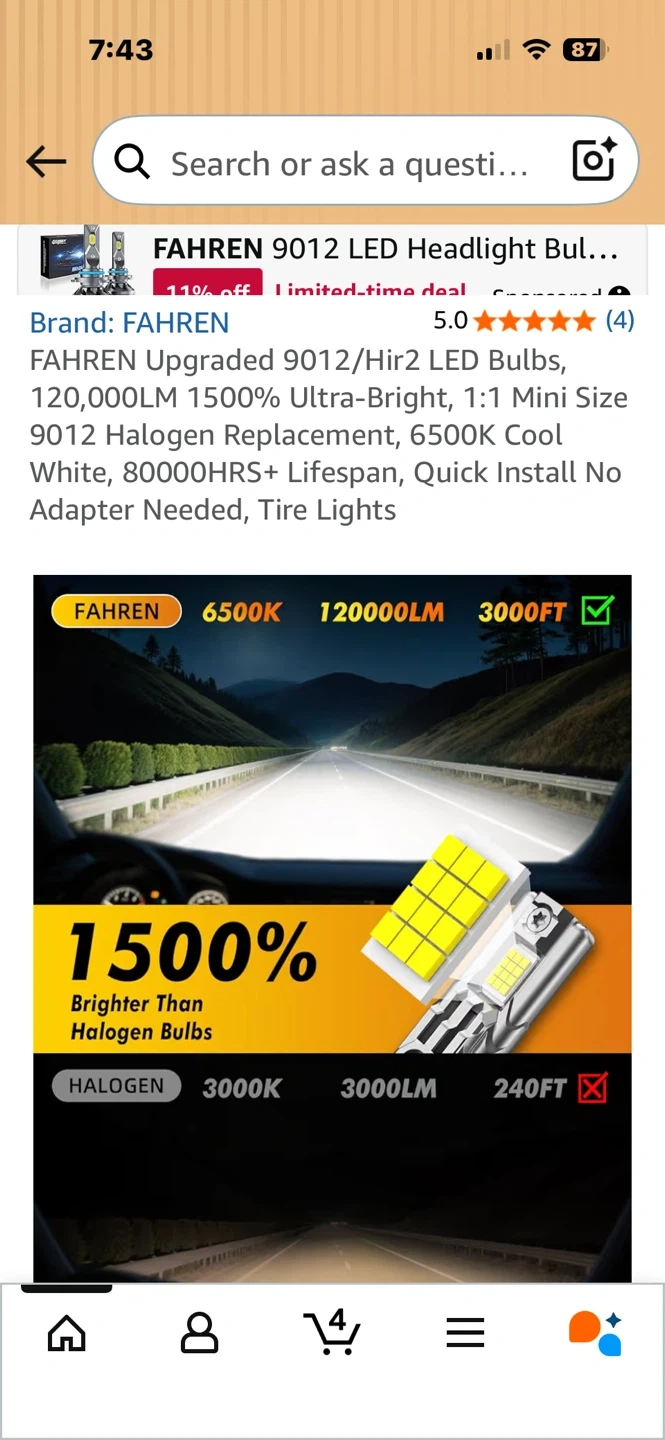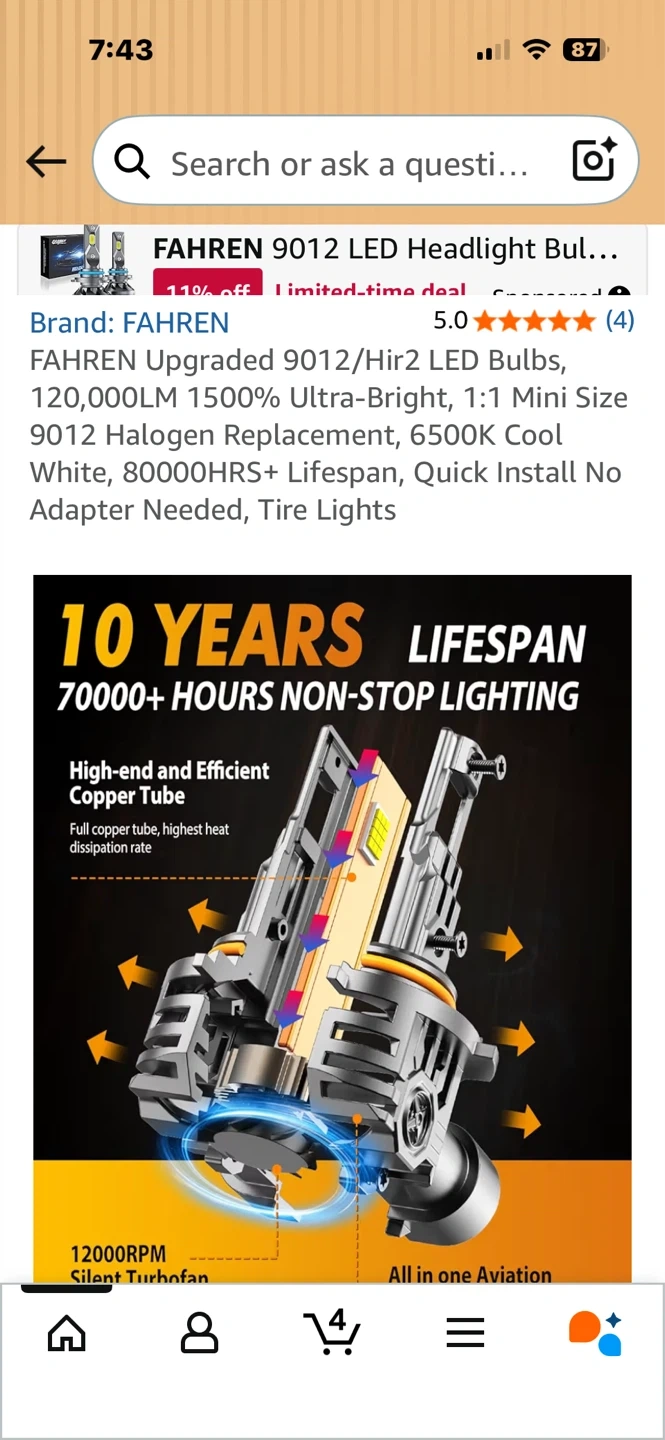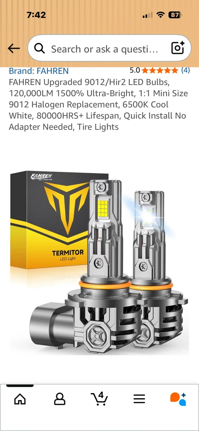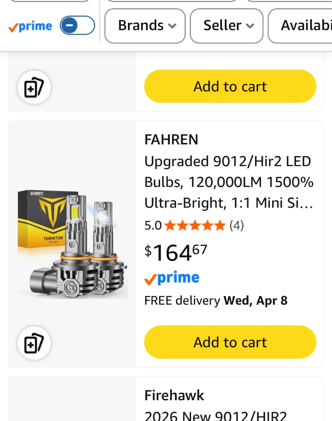 These FAHREN LED bulbs are an upgraded 9012/Hir2 model with 120,000LM ultra-bright output. They're a 1:1 mini size, designed for a 6500K cool white light and a quick install. They boast an 80,000+ hour lifespan.
