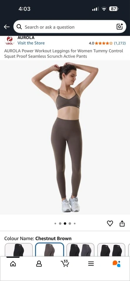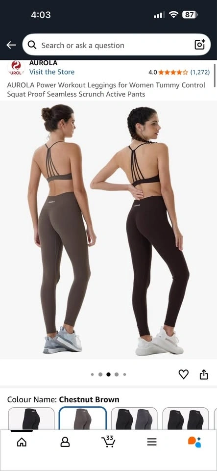 Comfy AUROLA Power Workout Leggings in chestnut brown. Features tummy control, squat-proof design, seamless construction, and scrunch butt detail. Great for the gym or casual wear. I'm pretty sure these are a size medium, but they're incredibly stretchy and would also fit XS and S. Pickup is available in SW/Terwillegar or on campus most weekdays. Check out my other listings for potential bundle deals!