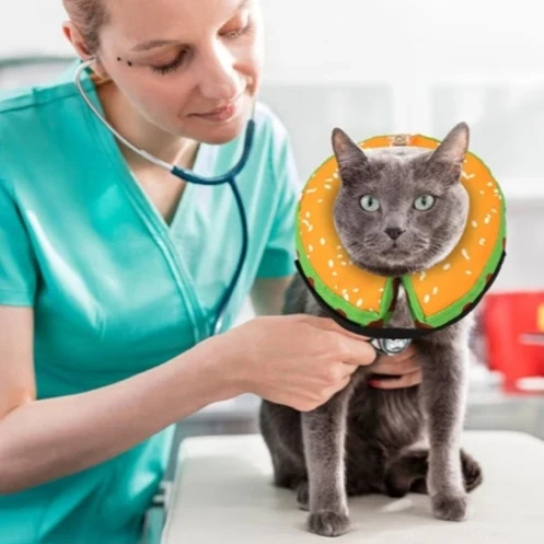 This inflatable collar is made of twill waterproof fabric and prevents pets from licking their wounds. It's comfortable enough to use as a pillow and doesn't restrict eating or drinking. It provides unlimited sight for your pet!