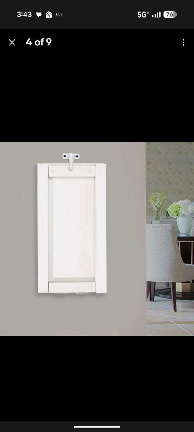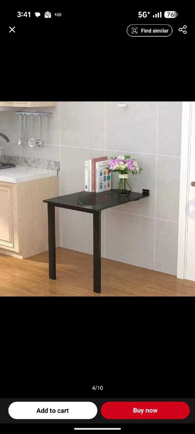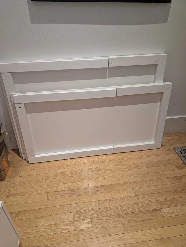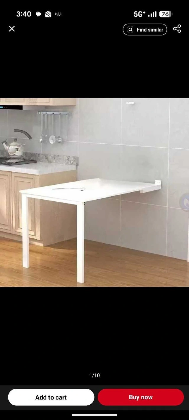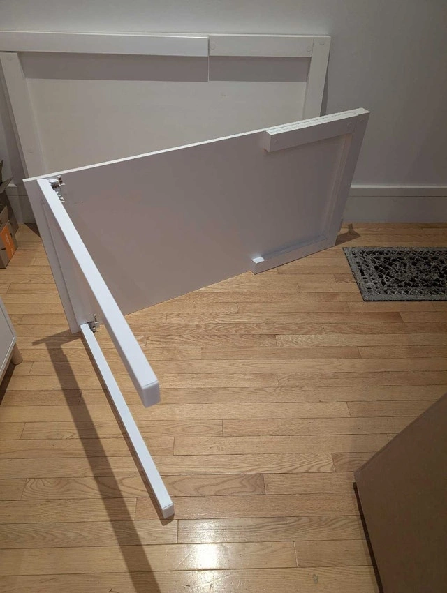 Two fold-up wall tables available, both white. They fold against the wall and double as art frames. One is 31.5" x 47" for $250, and the other is 23.5" x 47" (has a few scuffs) for $150.