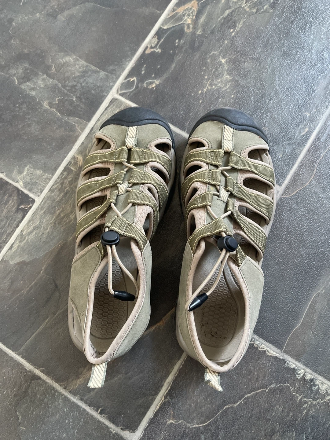 sandals are great for outdoor adventures. They feature a quick-drying material and a secure bungee lacing system. The durable rubber sole offers good traction. Perfect for hiking or wading!