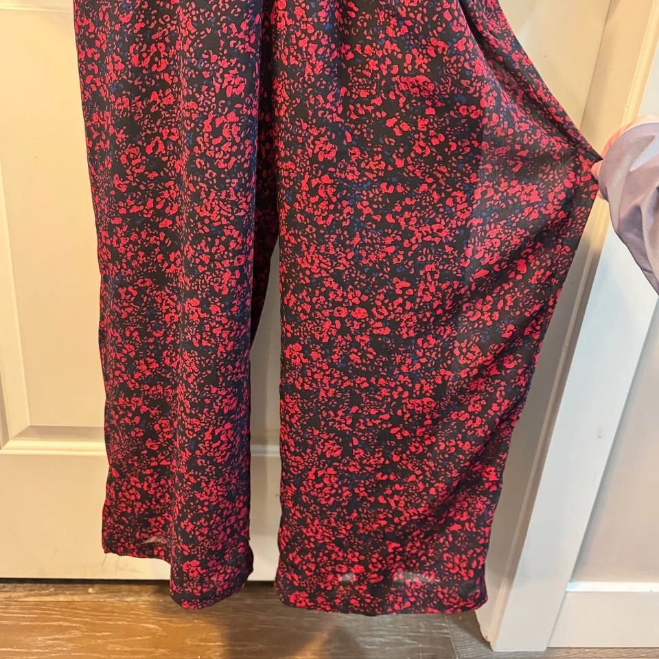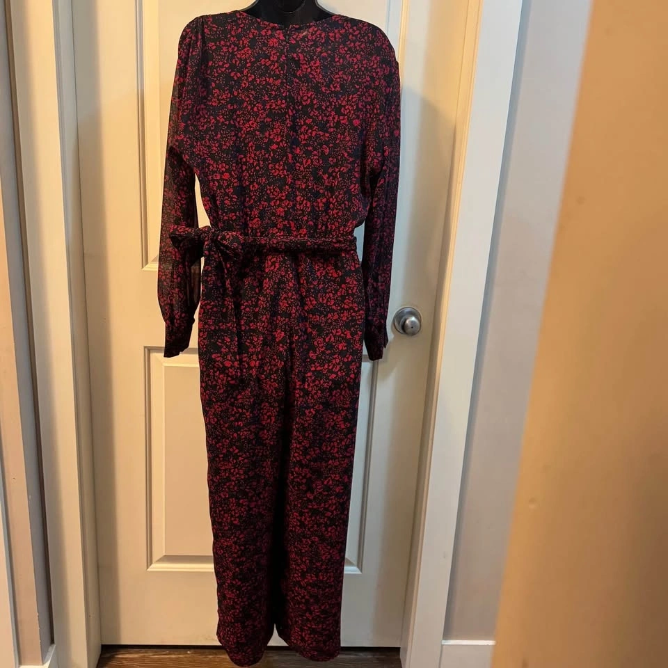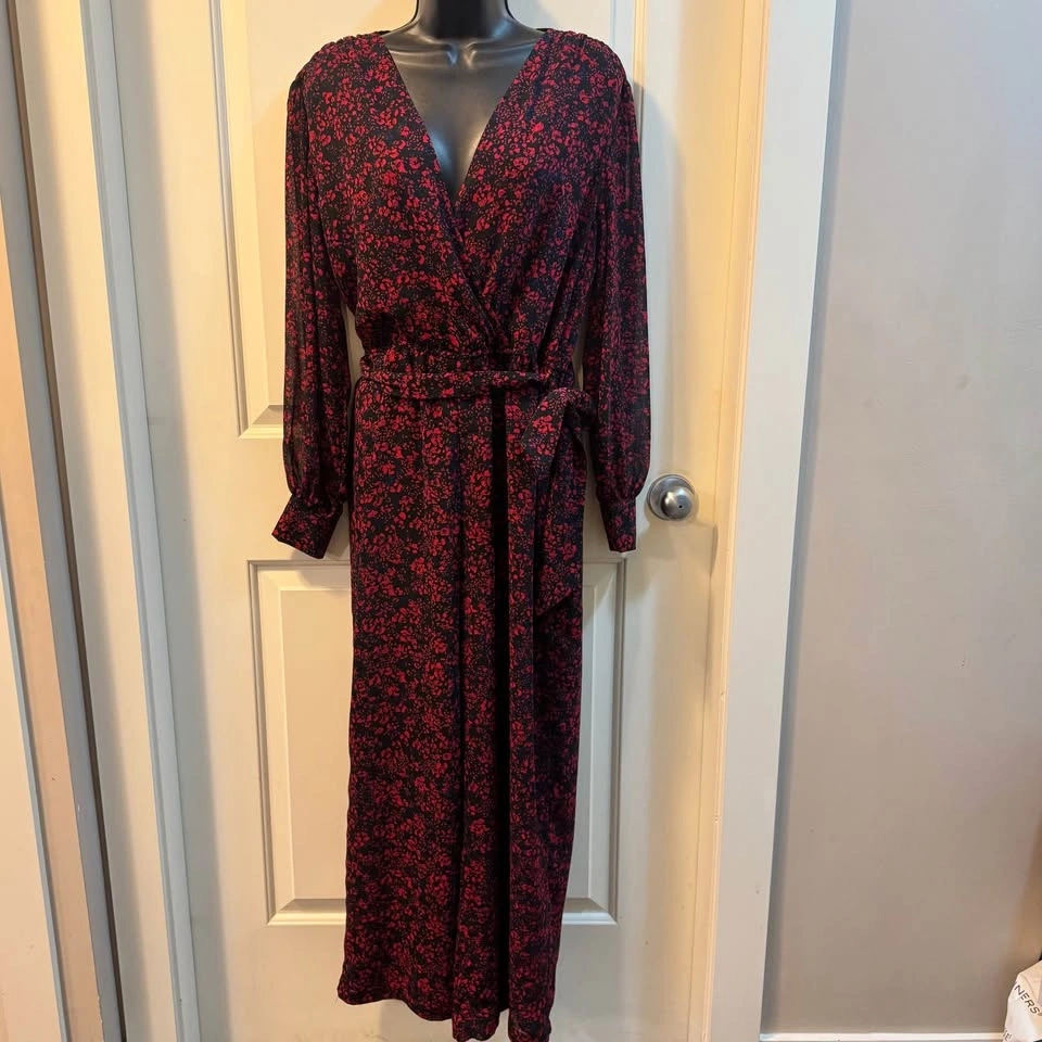 Dynamite Red Floral Long Sleeve Wrap Flowy Jumpsuit - Size M
