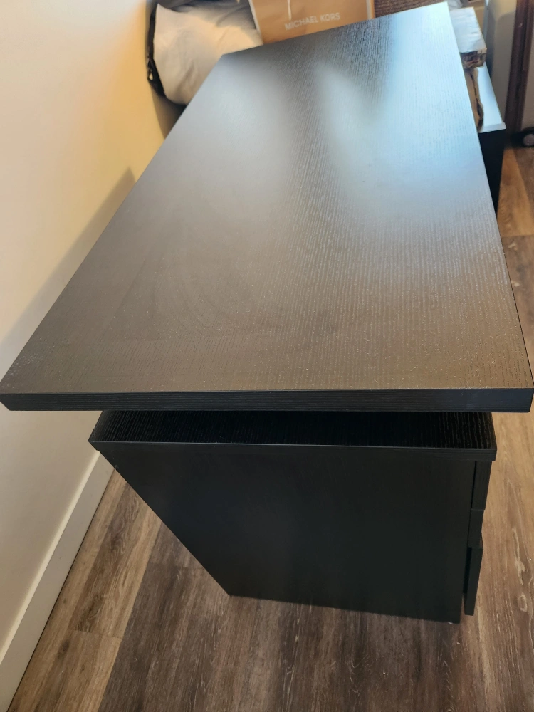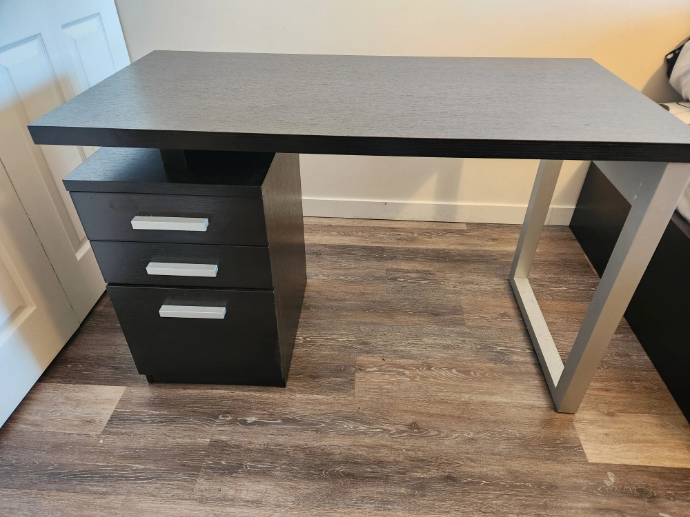 Selling a dark brown desk with drawers. In great shape and ready for a new workspace! Perfect for a home office or study area. 23.5 in x 47.5 in surface space and convenient storage with drawers.