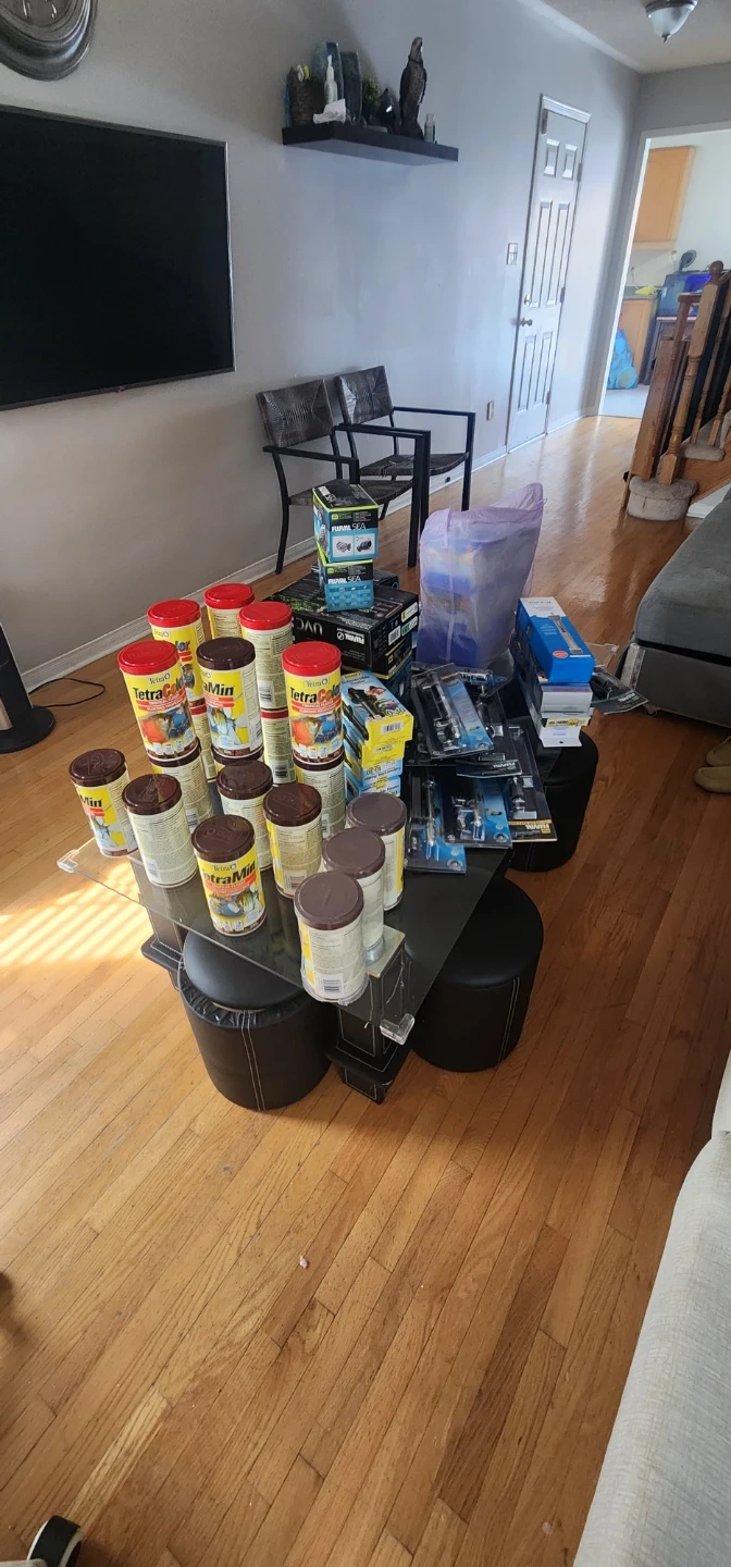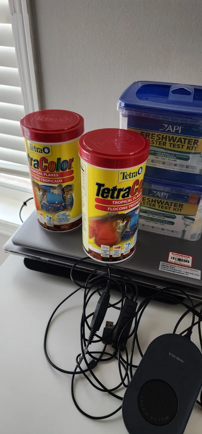 Two tubs of TetraColor Tropical Flakes fish food, each weighing 200g. It's formulated for tropical fish.