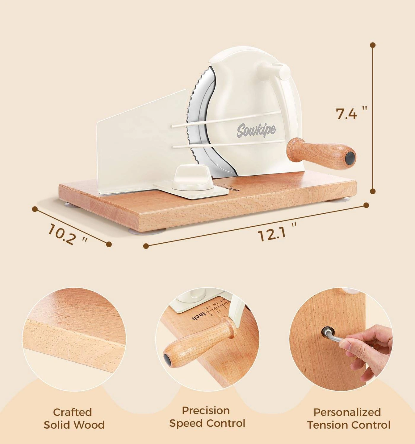 Adjust the thickness from thin to thick using the easy rotary knob—great for sandwich bread, toast, or sourdough. Suction cups on the bottom help keep it steady while in use, and the removable stainless steel blade makes cleaning quick and easy.
