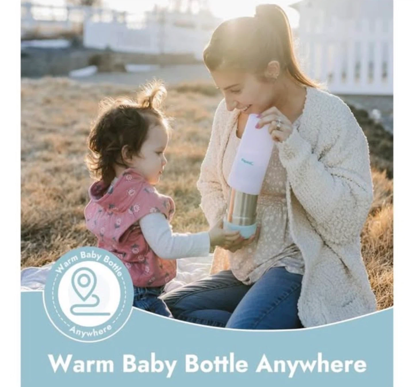 This insulated bottle warmer allows you to warm a baby bottle anywhere.