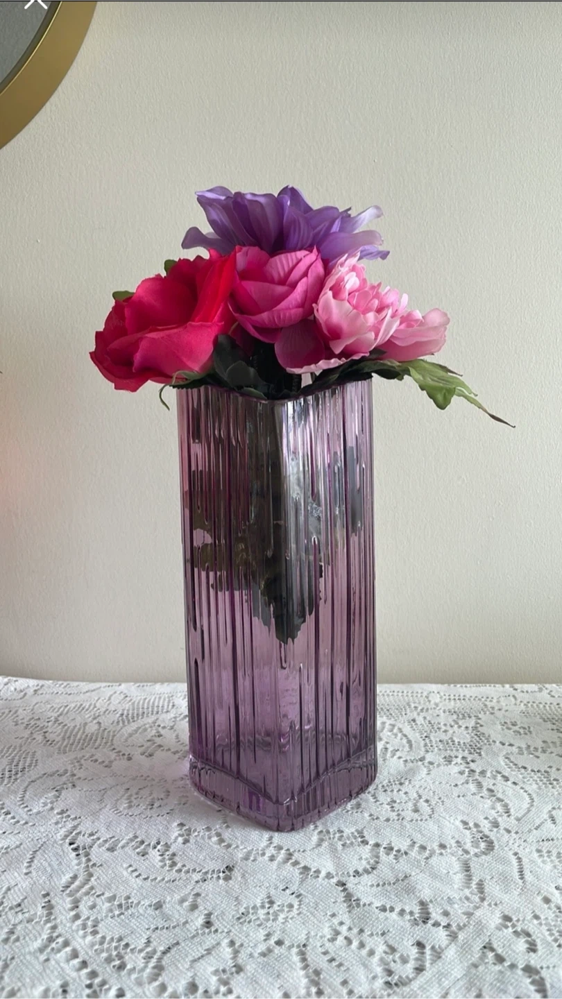 ❣️❣️Celebrate the season of love with this stunning purple ribbed glass vase.