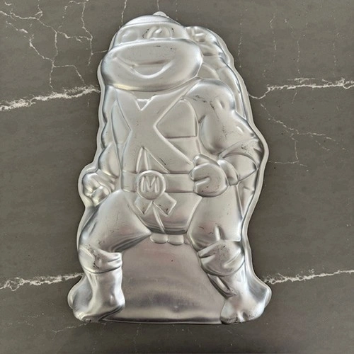 Bring some 80s nostalgia to your next birthday celebration with this vintage Wilton Teenage Mutant Ninja Turtles cake pan, featuring Michelangelo from the classic TMNT series. This aluminum character pan was produced in 1989 during the height of the Ninja Turtles craze and is a fun collectible for both bakers and fans of the franchise. Perfect for themed birthday cakes, collectors of vintage Wilton bakeware, or TMNT enthusiasts. Details: Brand: Wilton, Character: Michelangelo (Teenage Mutant Ninja Turtles), Year: 1989, Material: Aluminum, Type: Character cake pan. Includes: Original decorating instruction sheets (see photos). Condition: Pre-owned vintage condition. The pan shows light signs of use such as minor surface scratches and normal wear from baking and storage. No cracks or structural damage. Please review all photos carefully as they form part of the description. Great for: Teenage Mutant Ninja Turtles themed birthday cakes, Vintage Wilton cake pan collectors, 1980s nostalgia and memorabilia, Baking and cake decorating enthusiasts. This TMNT cake pan is a retired Wilton design and part of their popular collectible character cake pan series. Let me know if you're interested!