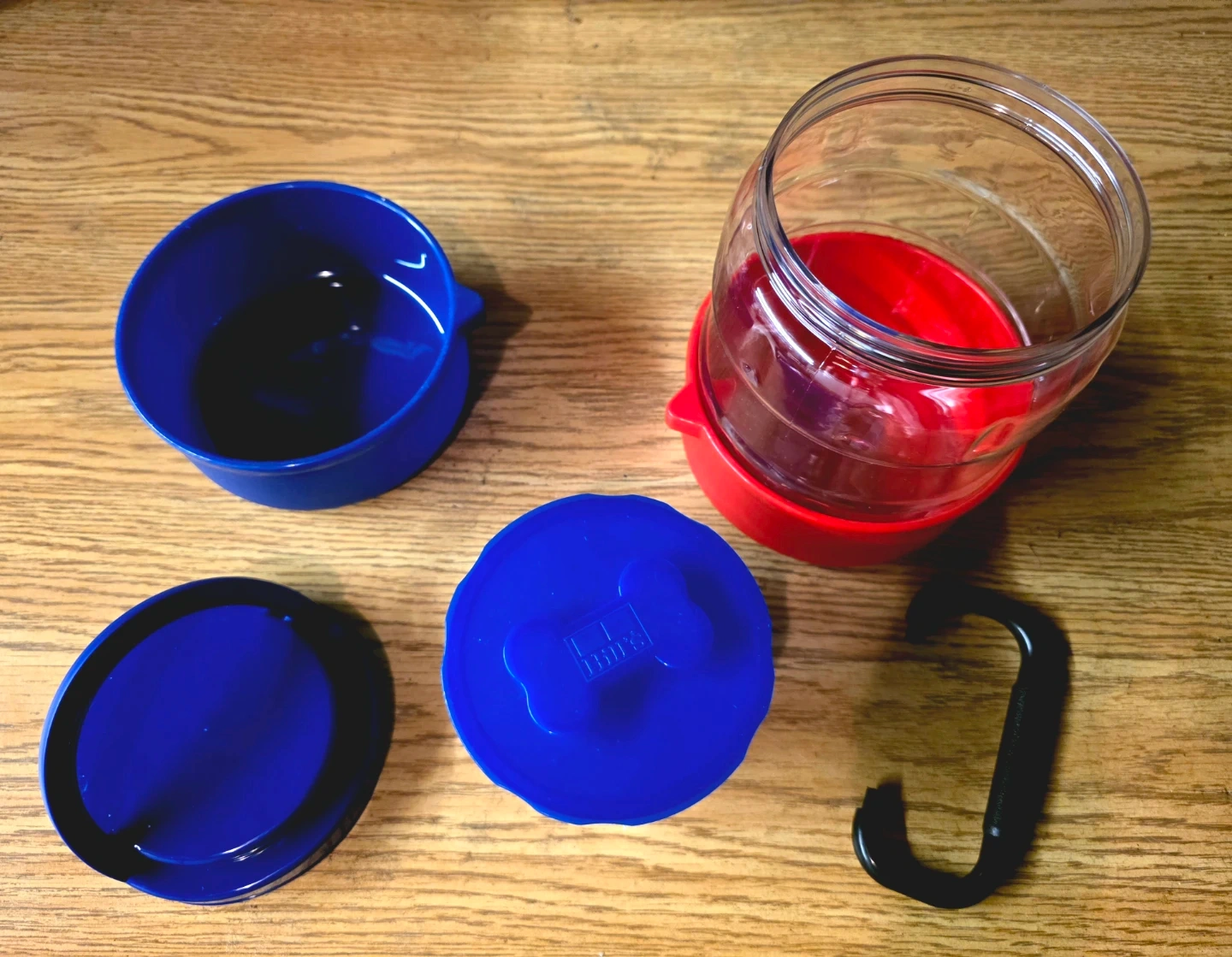 The bowls are designed with durability in mind, ensuring they're tough enough to withstand the excitement of travel while providing a safe and hygienic option for your pet's meals. Whether you're visiting a friend's house or embarking on a road trip, this travel container keeps your dog's feeding routine hassle-free.