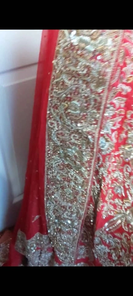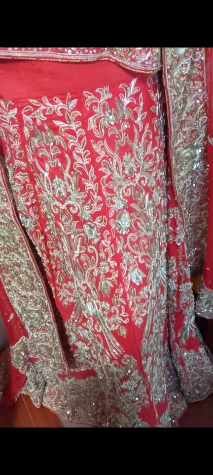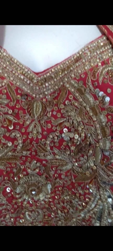 Beautiful brand new Pakistani Indian Desi red bridal shaadi lehenga fully embellished with handcrafted details including zari zardozi kora dabka stonework etc.
