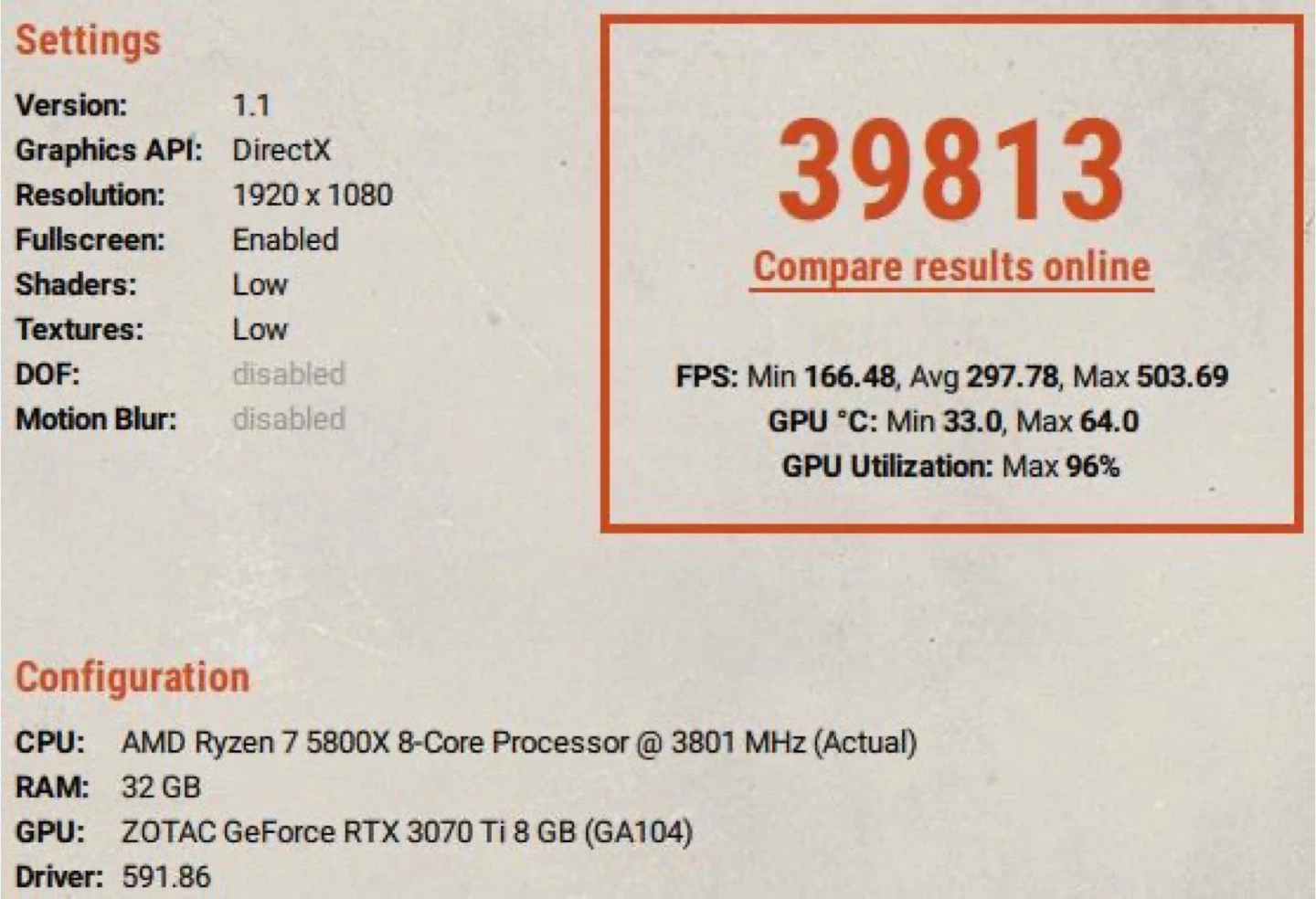 * 1080p:Â 297 FPS Average (Hits up to 503 FPS)