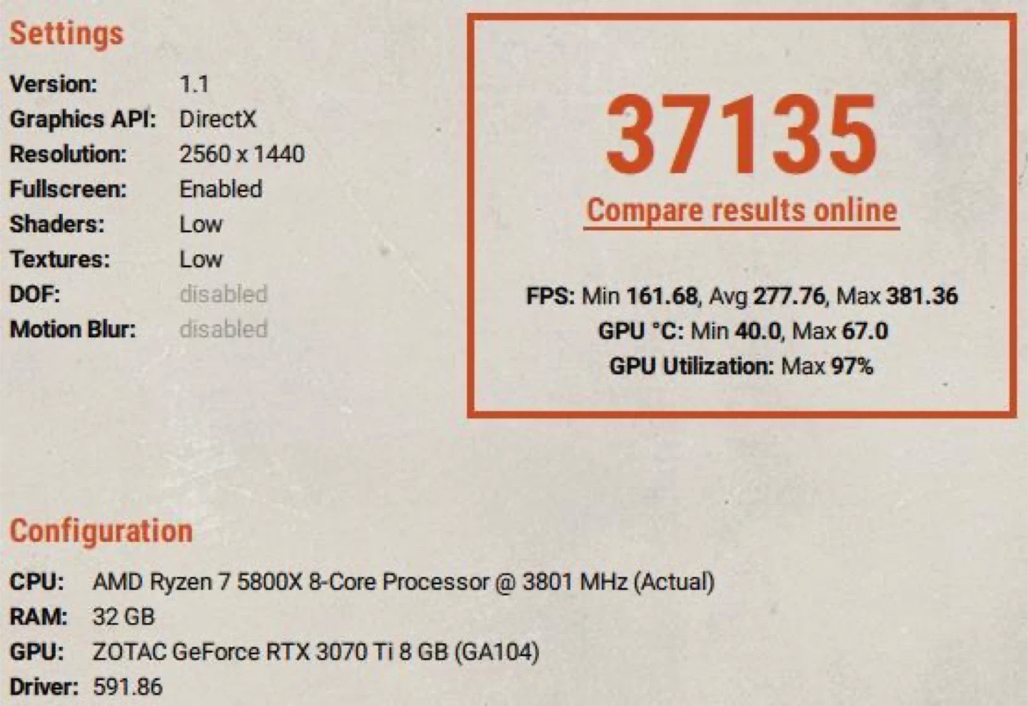 * 1440p:Â 277 FPS Average (Hits up to 381 FPS)