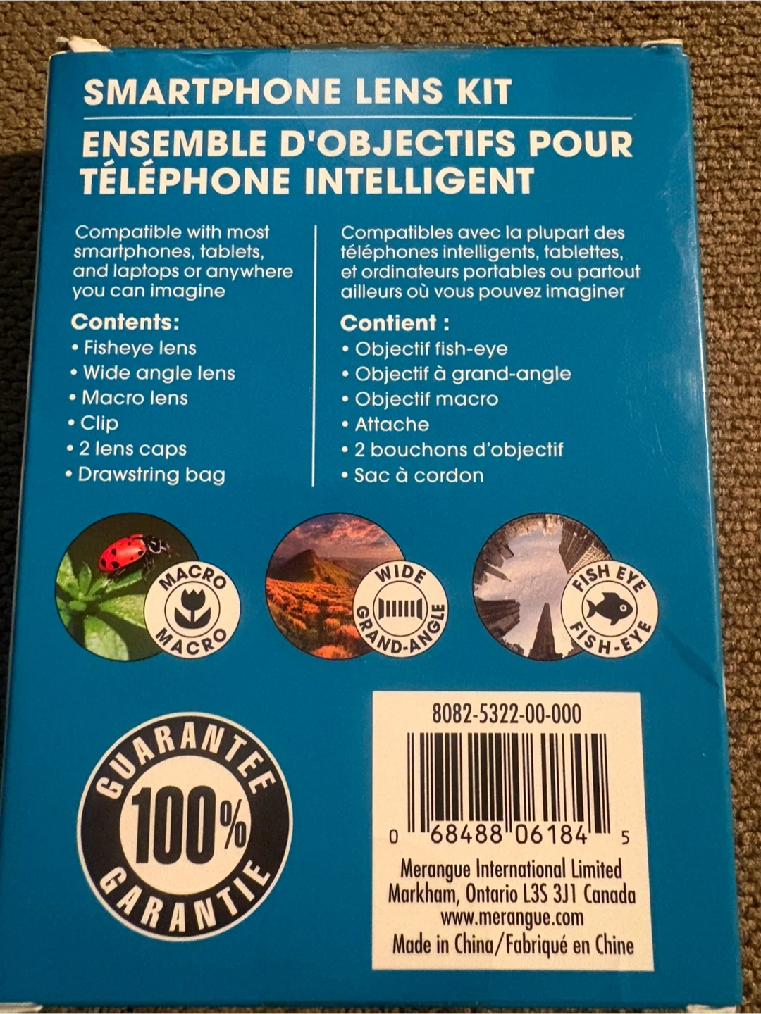 "🧡" a Merangue Smartphone Lens Kit that's compatible with most smartphones and tablets! The box includes: