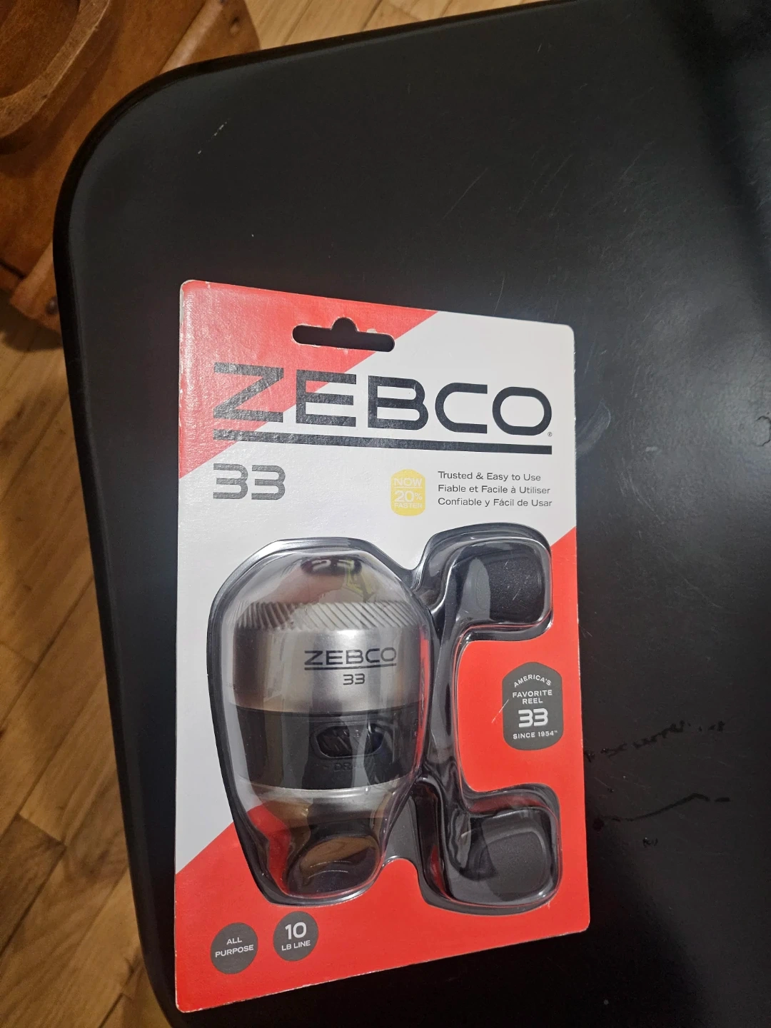 Zebco 33 spincast reel New on Card Features all-metal gears and a ball bearing system. Built-in Bite Alert. Pre-spooled with 10 lb Zebco line. "America's Favorite Reel" since 1954!