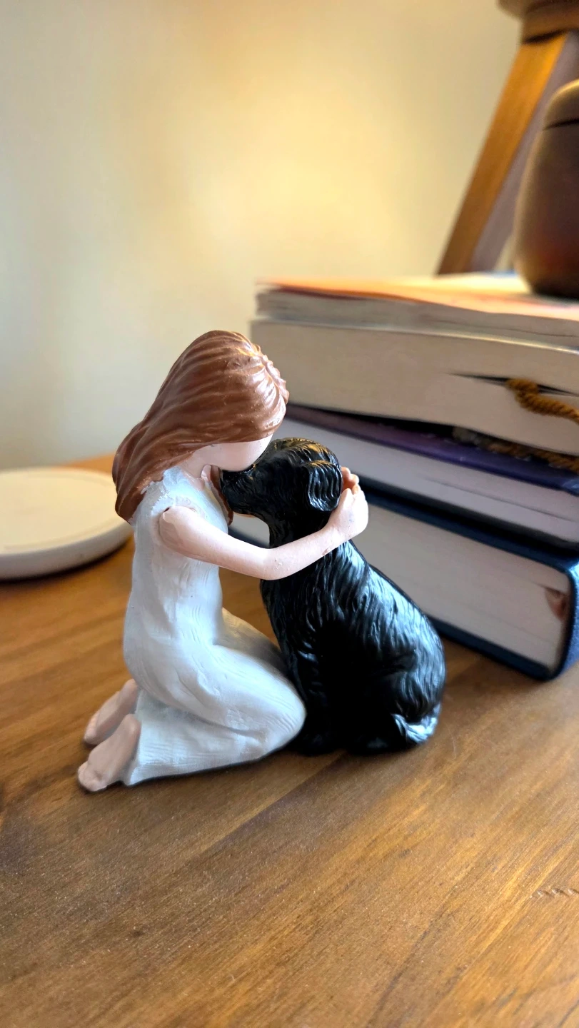 This girl and dog figurine statue is brand new, of great quality, and is perfect for display in the living room, bedroom, or bookcase. It's great if you have a dog, or good to give as a gift as well.