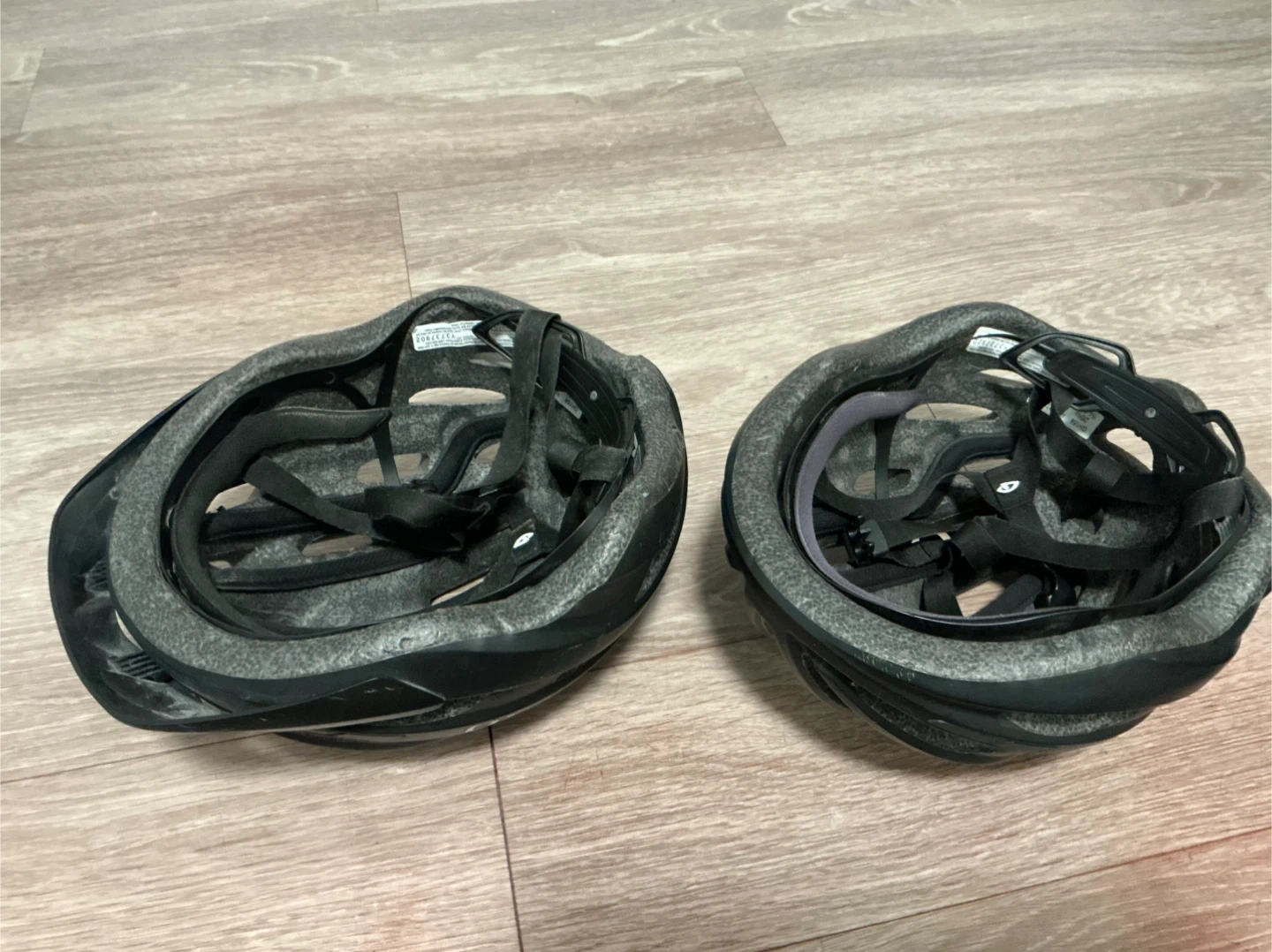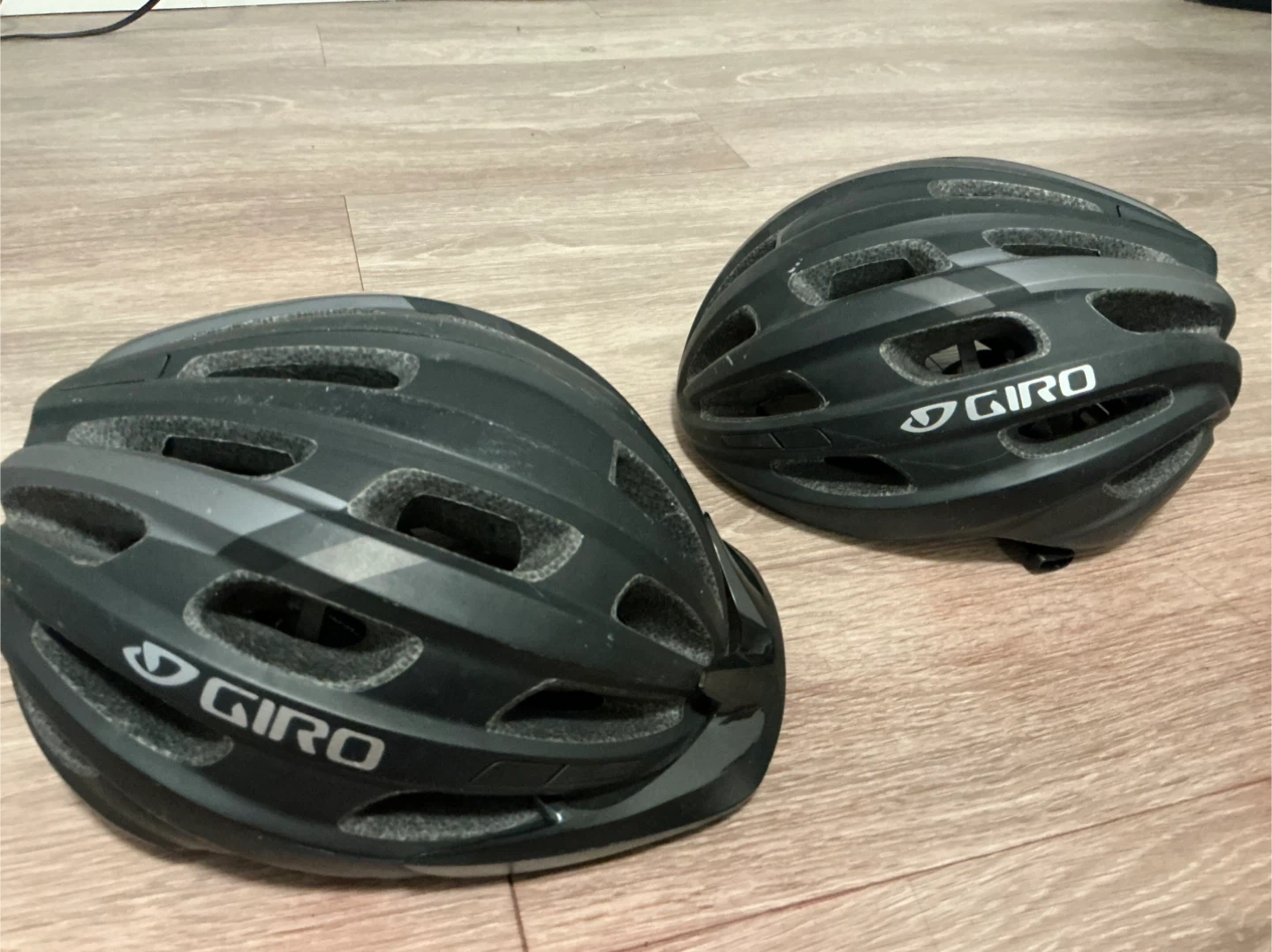 Two black Giro cycling helmets are available. They're designed for outdoor use. Helmets come with adjustable straps for a secure fit. 54- 61 cm, 260gm. The helmet at the back is in very good condition and the helmet at the front is fairly used, but in good condition. Willing to sell separately as well. Price listed for one.