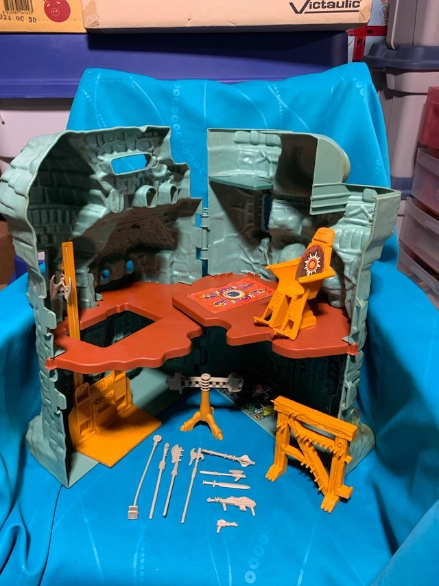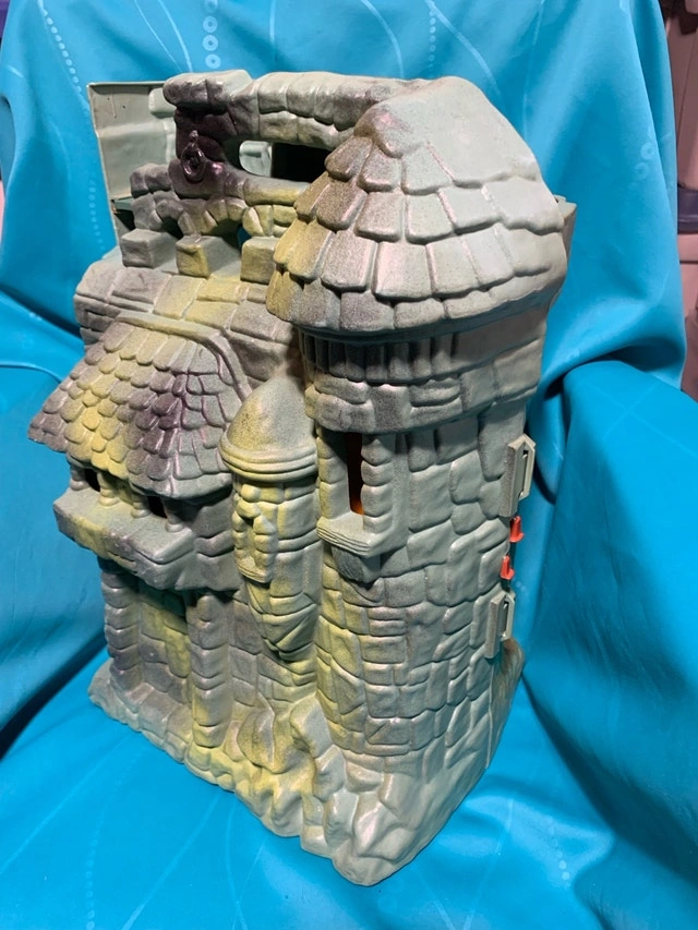 Relive your childhood with this vintage Castle Grey Skull from Masters of the Universe, a playset that brings back fond memories! This playset has some wear, which only adds to its nostalgic charm. The Castle Greyskull comes with a weapons rack and throne accessories to defend against Skeletor. Missing: Ladder, shield, floor, laser, 3 printed inserts, and printed flag sticker (have the stand). If the ad is still posted, it is still available. Willing to trade for Spider-Man stuff or rolled pennies.