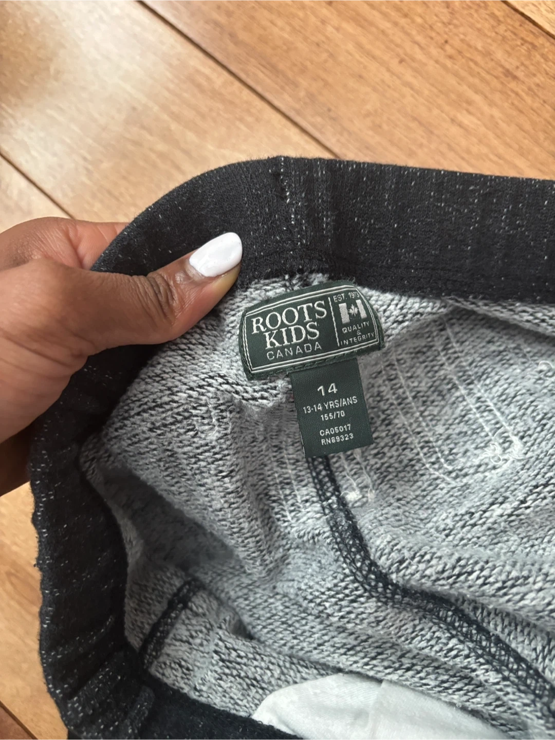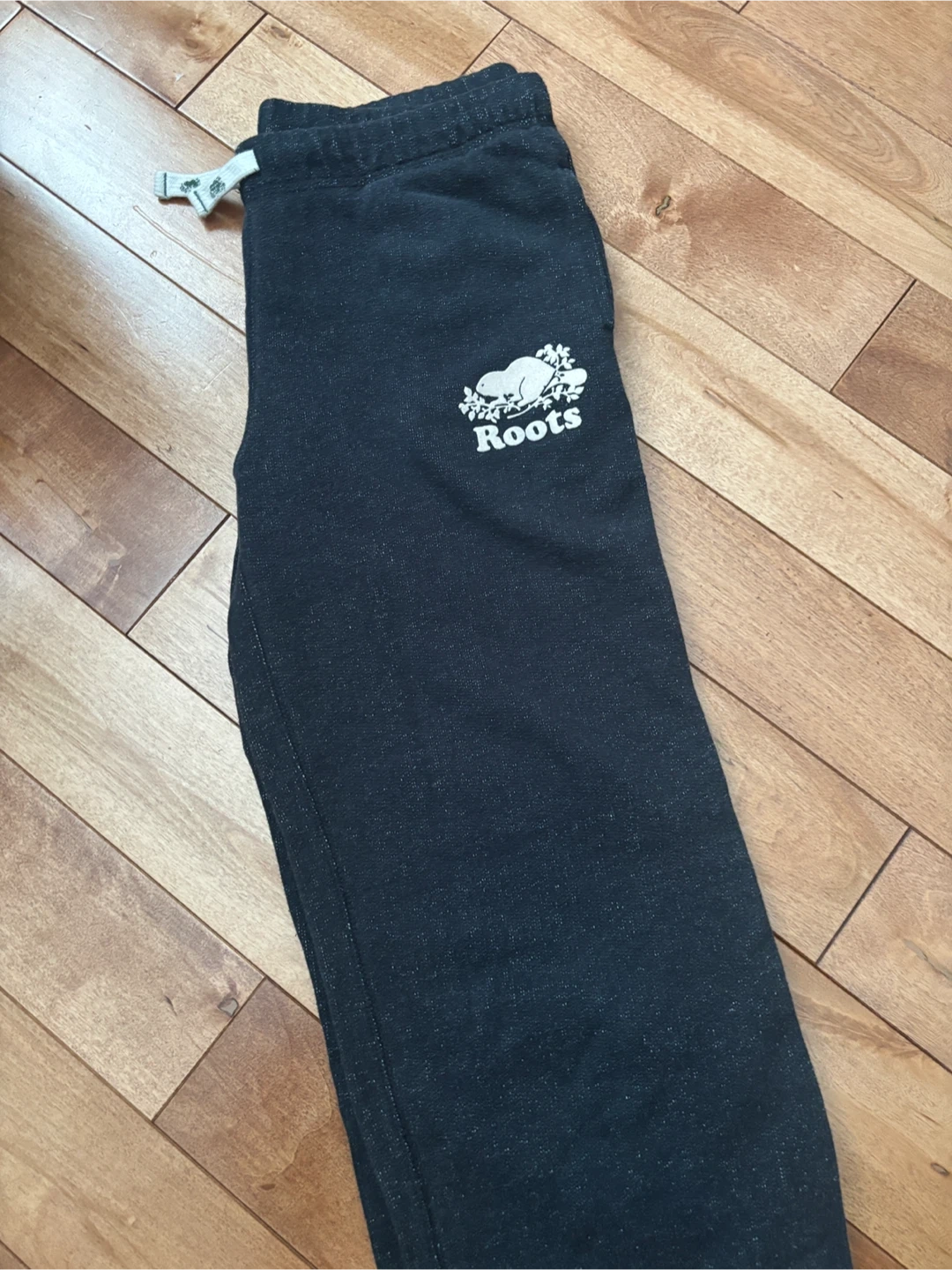 These Roots Kids sweatpants are a size 14. They are in new condition as I didn’t wear them a lot and now too tight for me. The waistband has a drawstring for an adjustable fit.