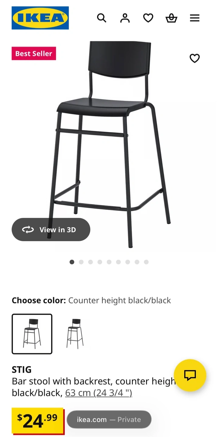 Also included are STIG bar stools in black/black, counter height.