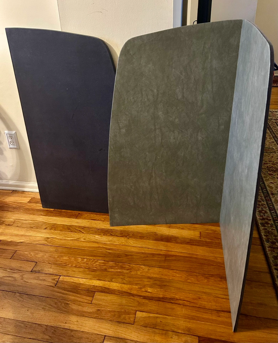 Beautifully detailed dining set. Beveled glass top and two solid wood bases. Matching carved chairs (2 with arms, 6 without arms - fabric may need re-upholstering). Chairs are 41” tall, cushion is 24” wide. Glass table shown is 7ft long, 50” wide. Wooden table bases are 30” wide & 30” in height. Glass table top protector (2 pc.) & green tablecloth included. Also included (not shown) single round beveled glass top for atop one base - 54” wide. Matching curio china cabinet priced & listed separately. Prefer to sell as a set. Solid quality set!